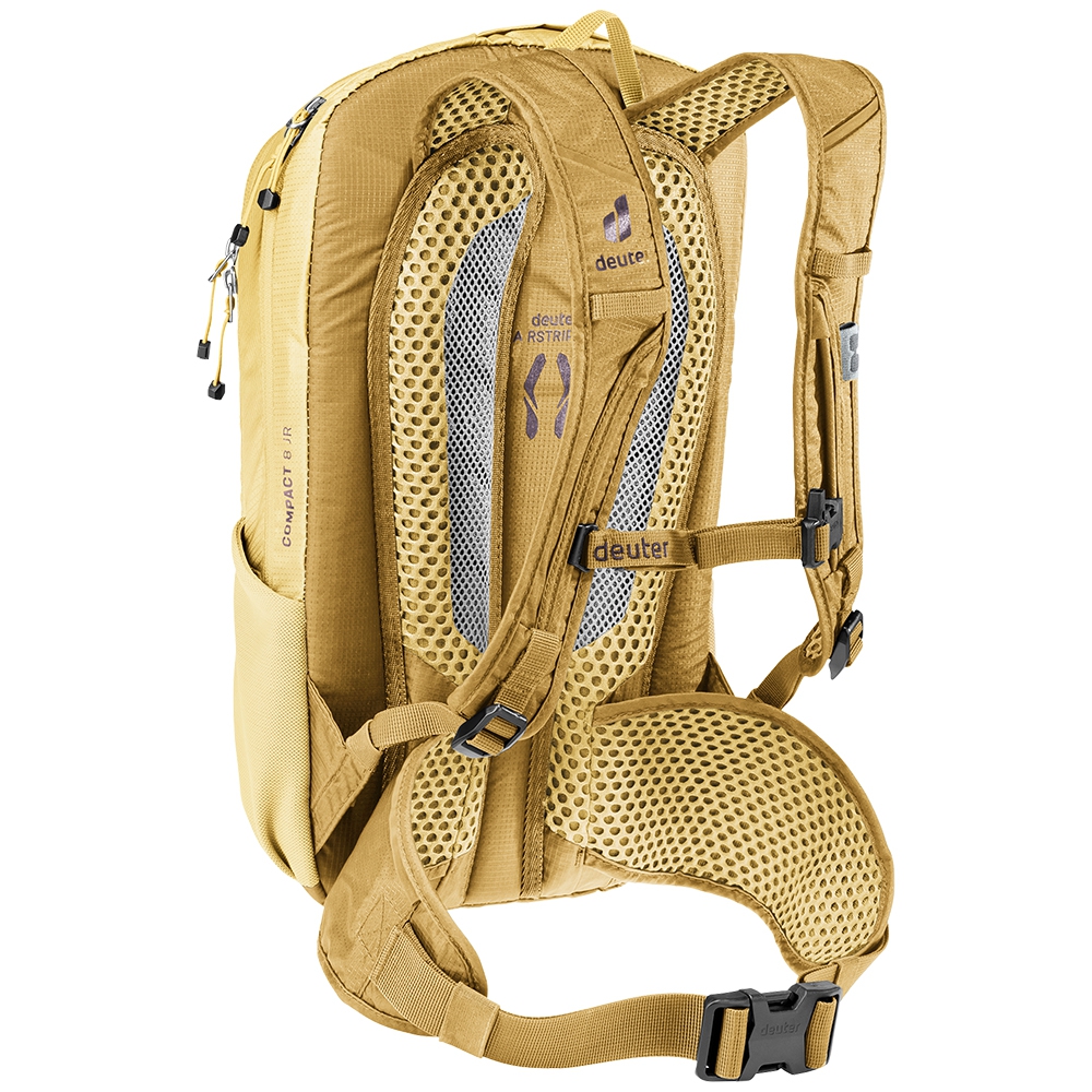 System nośny plecaka Deuter Compact 8 JR dopasowano do juniorskiej sylwetki, dzięki czemu plecak pozostaje stabilny nawet podczas dynamicznej jazdy. Ergonomiczne, oddychające szelki, regulowany pas piersiowy i pasy biodrowe z siateczki zapewniają idealne przyleganie i dobrą wentylację. Model ten jest również kompatybilny z systemem hydracyjnym (do 2 l) dając możliwość bezpiecznego i wygodnego nawadniania w trakcie jazdy. O bezpieczeństwo dbają odblaskowe elementy i co ciekawe,- gwizdek ratunkowy, który jest także w zestawie. Zdecydowanym ułatwieniem w organizacji drobnych przedmiotów w plecaku jest praktyczny uchwyt na okulary i klips na klucze. Deuter Compact 8 JR to idealny towarzysz małych kolarzy, którzy chcą cieszyć się jazdą z pełnym komfortem i funkcjonalnością dorosłego plecaka MTB.