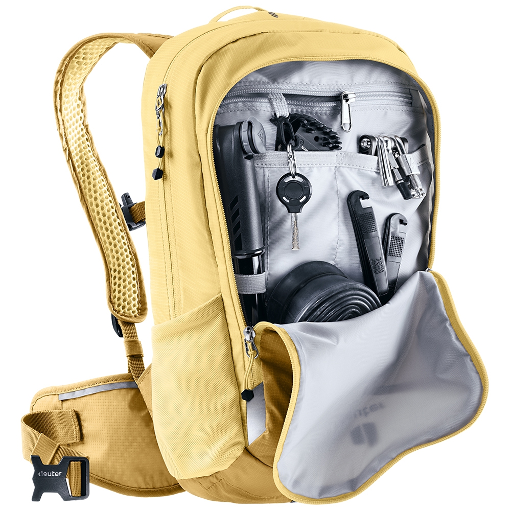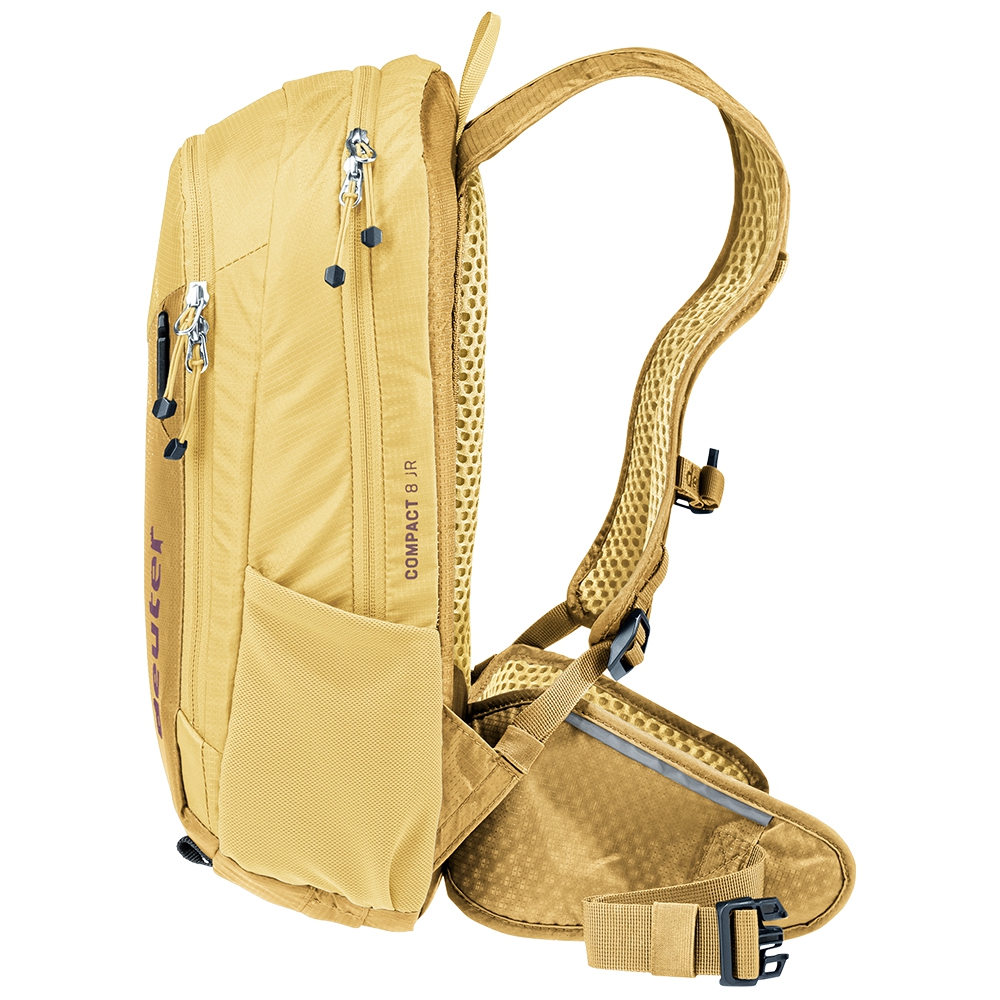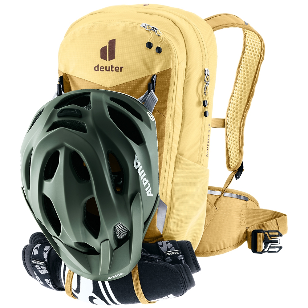 Deuter Compact 8 JR to lekki, a zarazem solidny plecak stworzony z myślą o dzieciach, które z pasją jeżdżą po leśnych trasach i górskich ścieżkach. Wykonano go z wytrzymałego, lekkiego i odpornego na przetarcia poliamidu pochodzącego z recyklingu, spełniającego standard bluesign. Dzięki temu plecak jest zarówno solidny, jak i przyjazny środowisku. Deuter Compact 8 JR oferuje przemyślany układ kieszeni: pojemną komorę główną na przekąski lub odzież, organizer na narzędzia, dwie elastyczne kieszenie boczne oraz przednią kieszeń z zamkiem. Dodatkowo, na froncie posiada mocowania na kask (także full-face), uchwyty na ochraniacze i pompkę rowerową. W zestawie znajdziemy równiez pokrowiec przeciwdeszczowy, który skutecznie chroni zawartość przed deszczem i wilgocią.