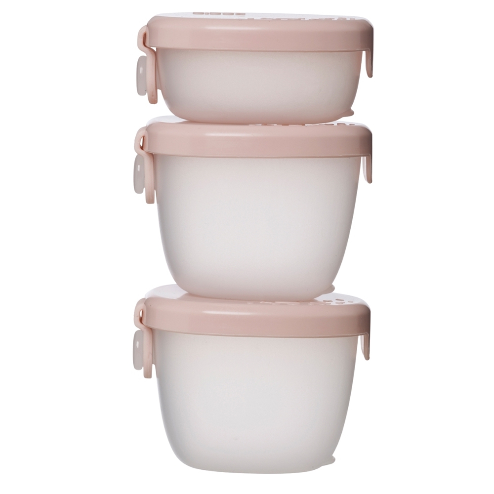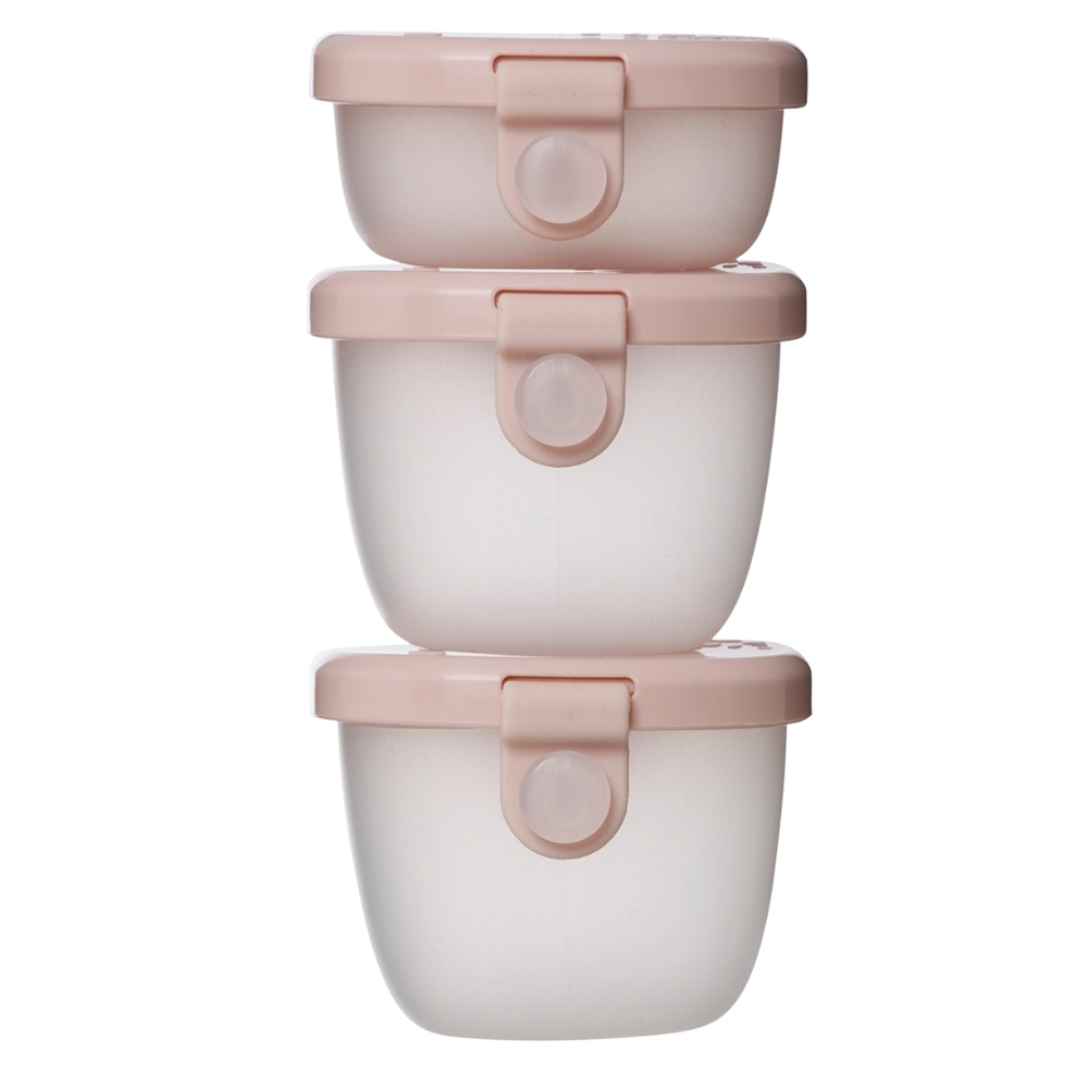 Komplet obejmuje dwa pojemniki o pojemności 120 ml oraz jeden o pojemności 60 ml, co pozwala dopasować ich wykorzystanie do rodzaju posiłku i potrzeb dziecka. Maluchy bez trudu poradzą sobie z samodzielnym otwieraniem i zamykaniem, co wspiera ich niezależność i zachęca do poznawania nowych smaków.