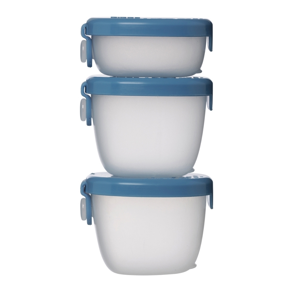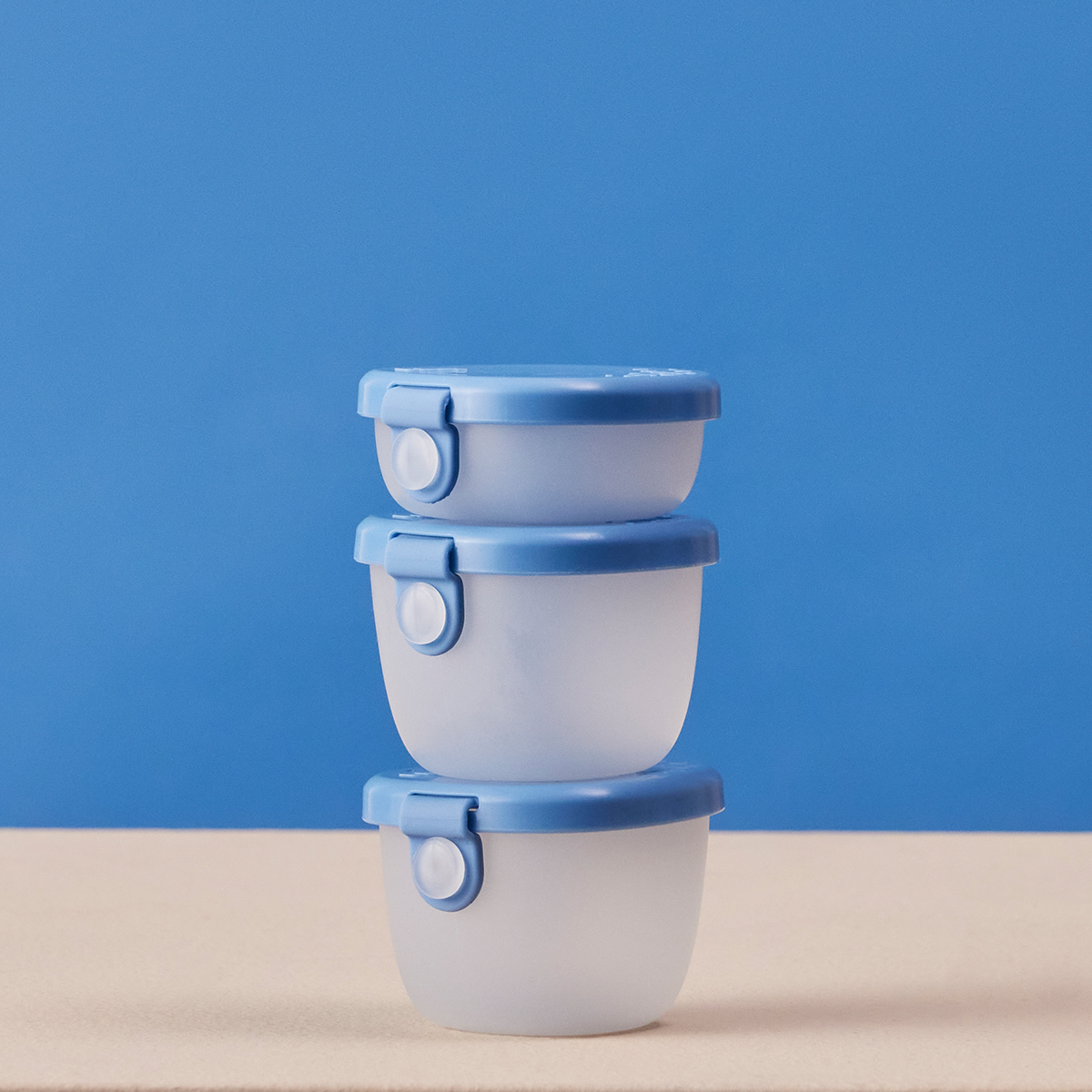 Komplet obejmuje dwa pojemniki o pojemności 120 ml oraz jeden o pojemności 60 ml, co pozwala dopasować ich wykorzystanie do rodzaju posiłku i potrzeb dziecka. Maluchy bez trudu poradzą sobie z samodzielnym otwieraniem i zamykaniem, co wspiera ich niezależność i zachęca do poznawania nowych smaków.