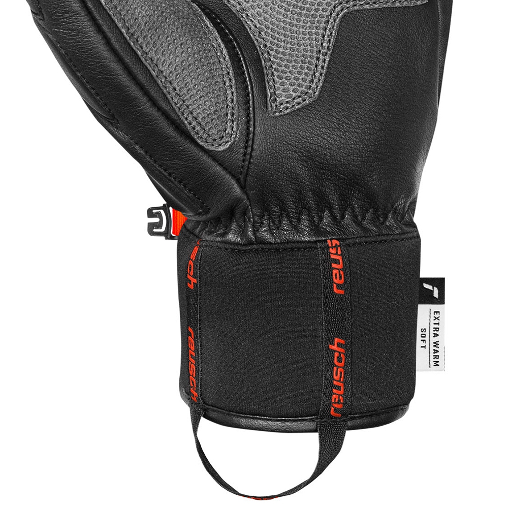 Dzięki dużemu doświadczeniu i współpracy z wieloma najwyższej klasy zawodnikami marka Reusch w zawodniczych rękawicach narciarskich Reusch World Champ umieściła protektory, które chronią newralgiczne, najbardziej narażone na uderzenia części dłoni. Na wierzchu rękawic znajdziemy kompozytowy protektor, który chroni grzbiet dłoni oraz knykcie. Miękkie ochraniacze znajdują się również na palcach. Wykonane są jednak w taki sposób, aby nie ograniczać ruchu umożliwiając pewny chwyt w każdych warunkach. Elastyczne zapięcie na rzep w obrębie nadgarstka pozwala na precyzyjne dopasowanie mankietu, gwarantując pewne i stabilne ułożenie rękawicy na dłoni. Wewnątrz mankietu umieszczono Comfort Leash – praktyczną opaskę na nadgarstek, która zapobiega zgubieniu rękawicy po jej zdjęciu.