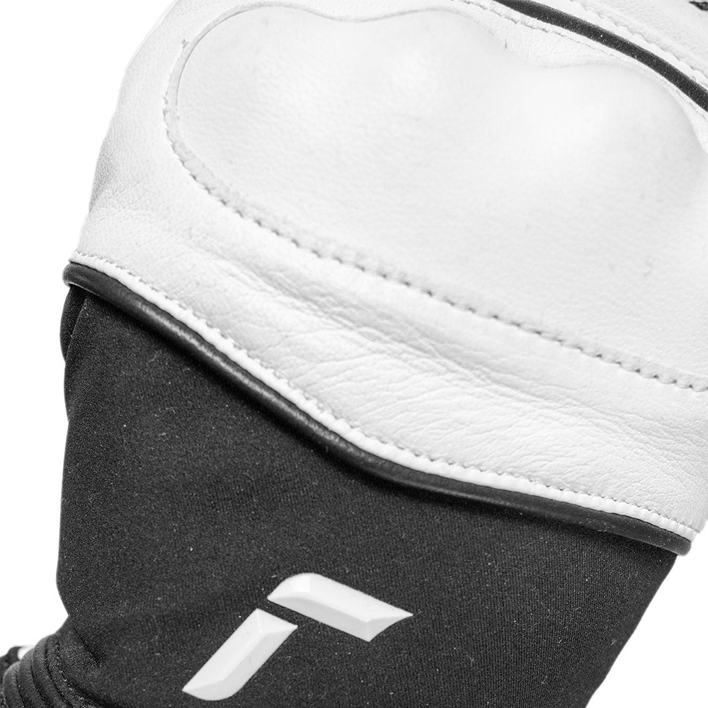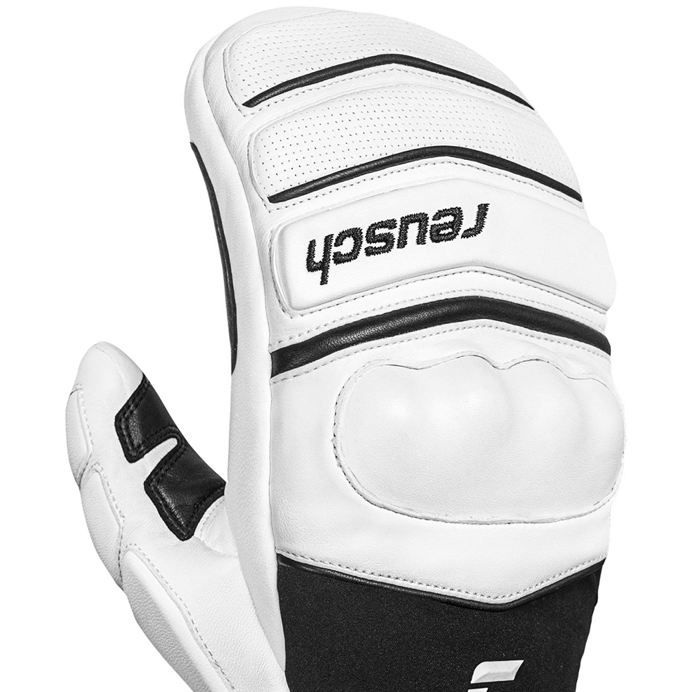 Dzięki dużemu doświadczeniu i współpracy z wieloma najwyższej klasy zawodnikami marka Reusch w zawodniczych rękawicach narciarskich Reusch World Champ umieściła protektory, które chronią newralgiczne, najbardziej narażone na uderzenia części dłoni. Na wierzchu rękawic znajdziemy kompozytowy protektor, który chroni grzbiet dłoni oraz knykcie. Miękkie ochraniacze znajdują się również na palcach. Wykonane są jednak w taki sposób, aby nie ograniczać ruchu umożliwiając pewny chwyt w każdych warunkach. Elastyczne zapięcie na rzep w obrębie nadgarstka pozwala na precyzyjne dopasowanie mankietu, gwarantując pewne i stabilne ułożenie rękawicy na dłoni. Wewnątrz mankietu umieszczono Comfort Leash – praktyczną opaskę na nadgarstek, która zapobiega zgubieniu rękawicy po jej zdjęciu.