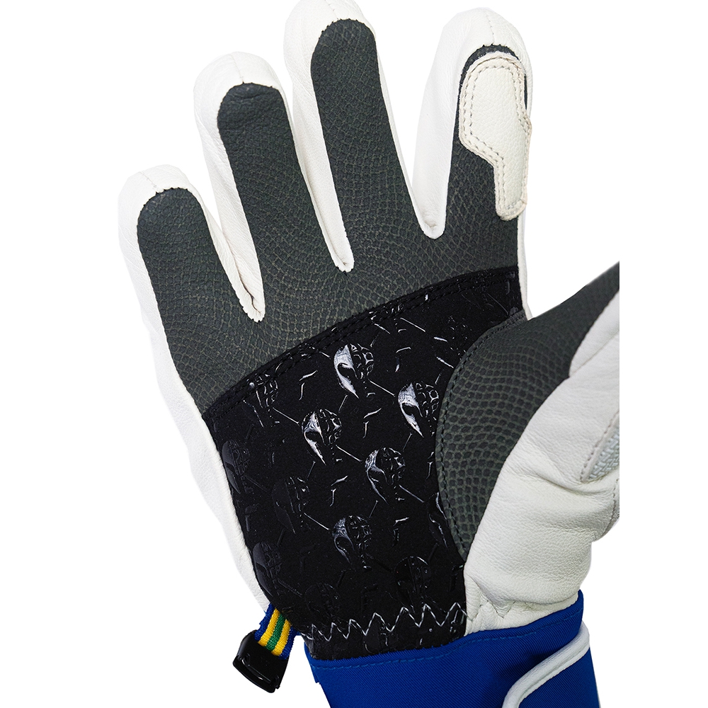 Pięciopalczaste rękawice narciarskie Reusch Worldcup Warrior GS Junior to oferta dla młodych zawodników oraz ambitnych, agresywnie jeżdżących narciarzy, którzy poszukują najlepszego dopasowania, pewnego chwytu, a także odpowiedniego komfortu i ciepła. Rękawice wykonano z poliestru oraz koziej skóry, która mimo swojej niewielkiej grubości jest wyjątkowo wytrzymała i świetnie izoluje ciepło. Charakteryzuje się wysoką elastycznością oraz niską wagą, dzięki czemu rękawica idealnie dopasowuje się do dłoni i rękojeści kijka narciarskiego, zapewniając pełną swobodę ruchów.