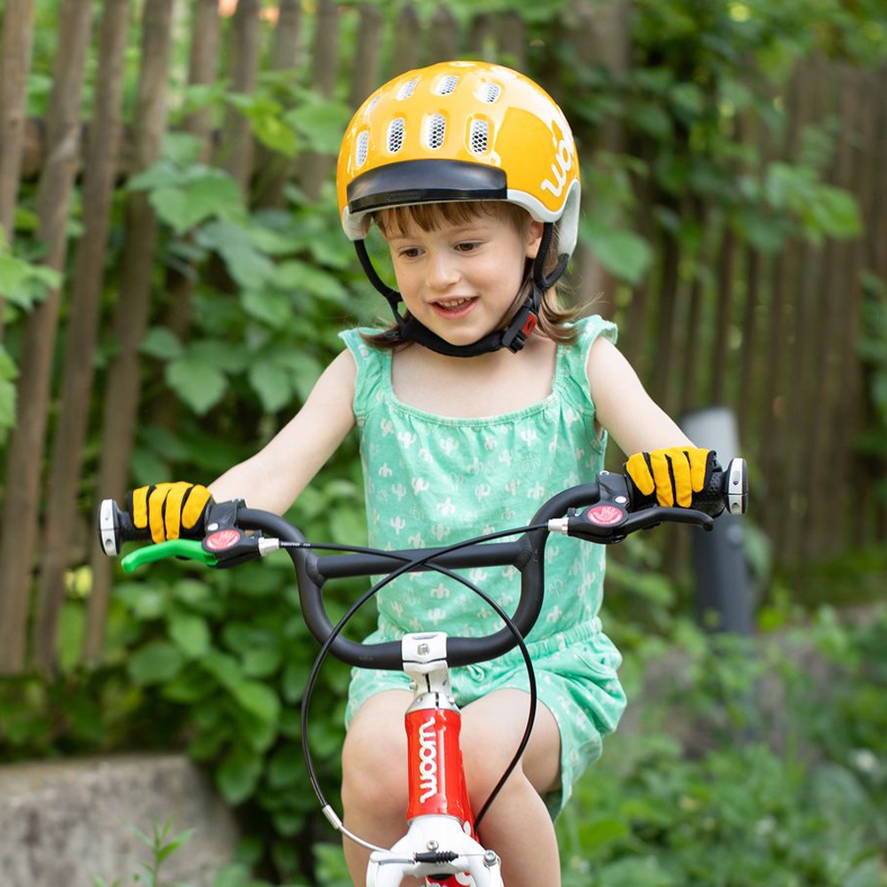 Rękawiczki woom zapewniają dobrą przyczepność do kierownicy i ochronę podczas upadku. Pochłaniają pot, są oddychające i nie uwierają. Doskonale przylegają do rąk dziecka. Dostępne w trzech rozmiarach.