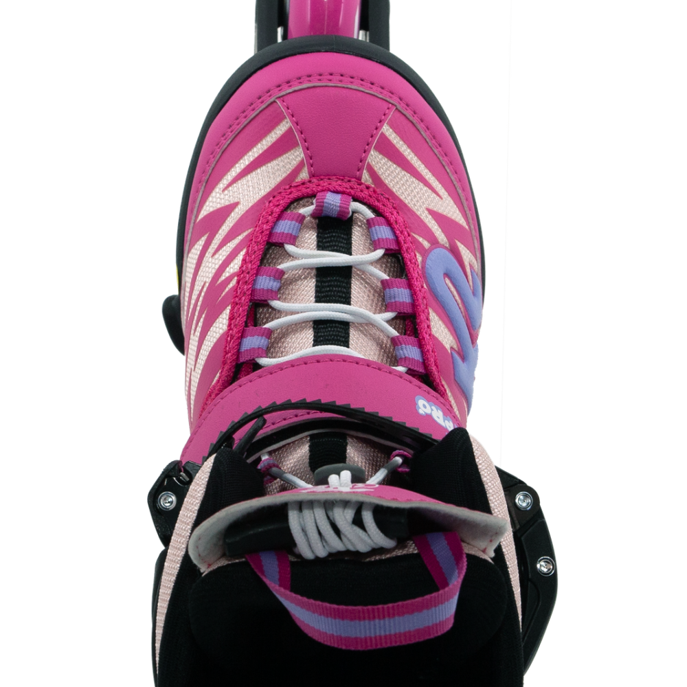 Rolki K2 Lumi Pro posiadają świetny system szybkiego wiązania K2 Speed Lacing, który pozwala szybko i z łatwością zapiąć rolki. Wystarczy jedno pociągnięcie paska, aby sznurówki idealnie i błyskawicznie dopasowały but do stopy. Specjalna blokada utrzymuje sznurówki właściwie napięte i zapobiega luzowaniu się ich podczas jazdy. Pętla w górnej części cholewki ułatwia wkładanie butów.