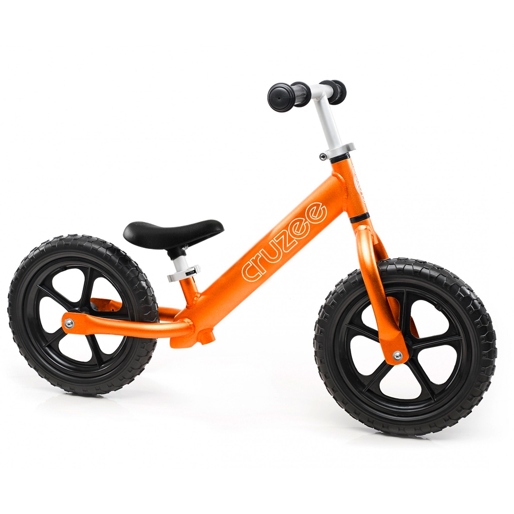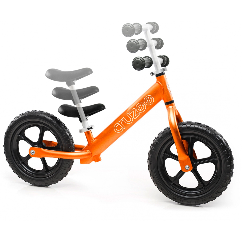 Pomarańczowy rowerek biegowy Cruzee 12 to najlżejszy model w naszej ofercie. Zalecany dla dzieci w wieku od 2 lat (często nawet od 18 miesięcy). Rower posiada regulację wysokości siodełka od 30 do 40 cm, a po zmianie sztycy (druga, dłuższa jest w komplecie) od 40 do 50 cm. Kierownica regulowana od 50 do 60 cm. Regulacje odbywają się bez potrzeby użycia klucza, dzięki szybkozamykaczom. Pomarańczowe anodowane aluminium zapewnia bardzo atrakcyjną kolorystykę rowerka Cruzee.