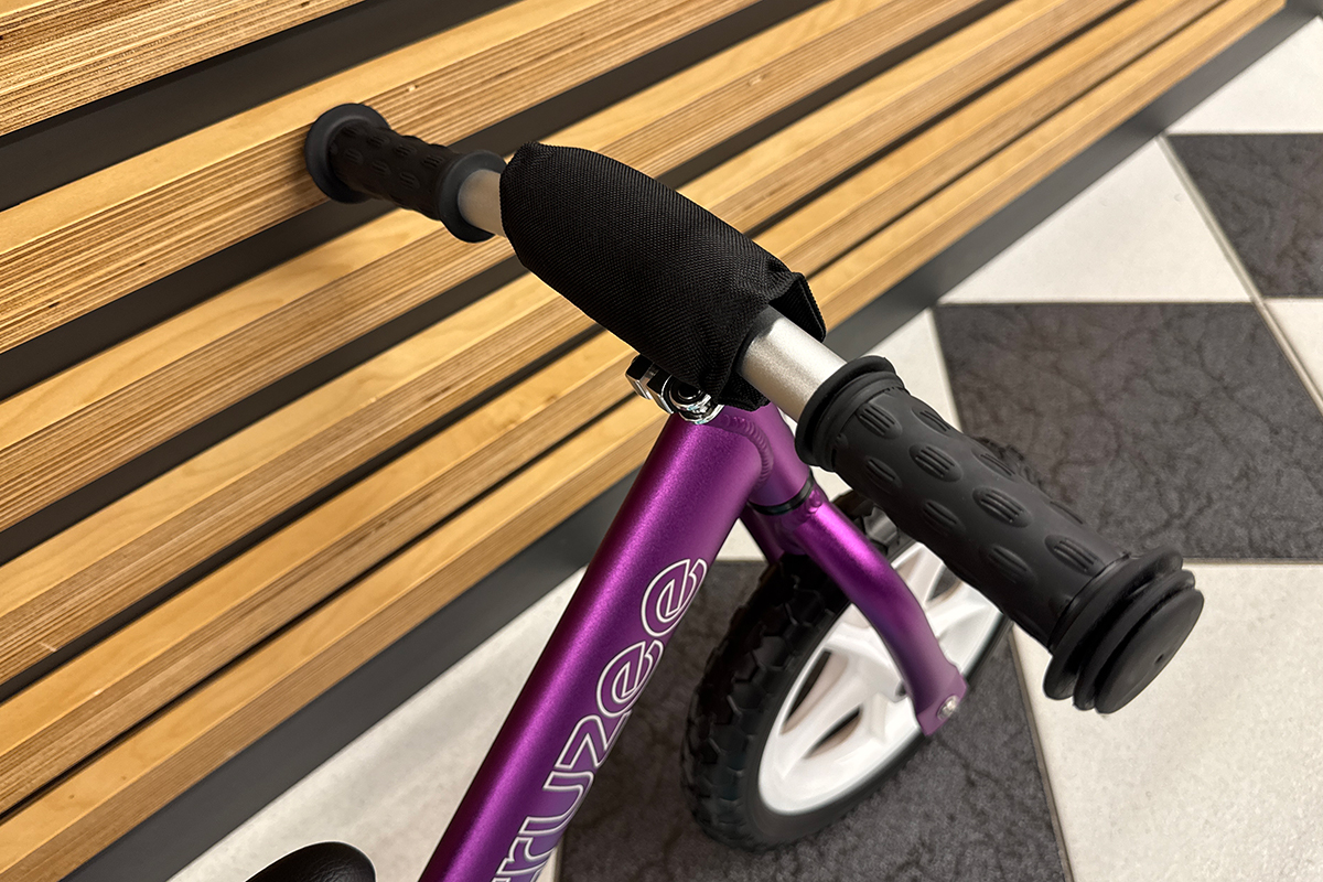 W rowerku biegowym Cruzee znajdziemy szereg zabezpieczeń. W rowerku biegowym Cruzee w wersji SAFE na kierownicy została umieszczona miękka poduszka mająca za zadanie uchronić główkę dziecka przed urazami podczas ewentualnej wywrotki. Ochraniacz montowany w bardzo prosty sposób, poprzez zapięcie go na kierownicy przy pomocy rzepów, co pozwala również na łatwe ściągnięcie go w razie potrzeby. Kierownica wyposażona jest także w czarne, gumowe uchwyty poszerzone na końcach. Sprawiają one, że rączki dziecka nie zsuwają się z kierownicy oraz chronią je przed niepotrzebnymi otarciami.