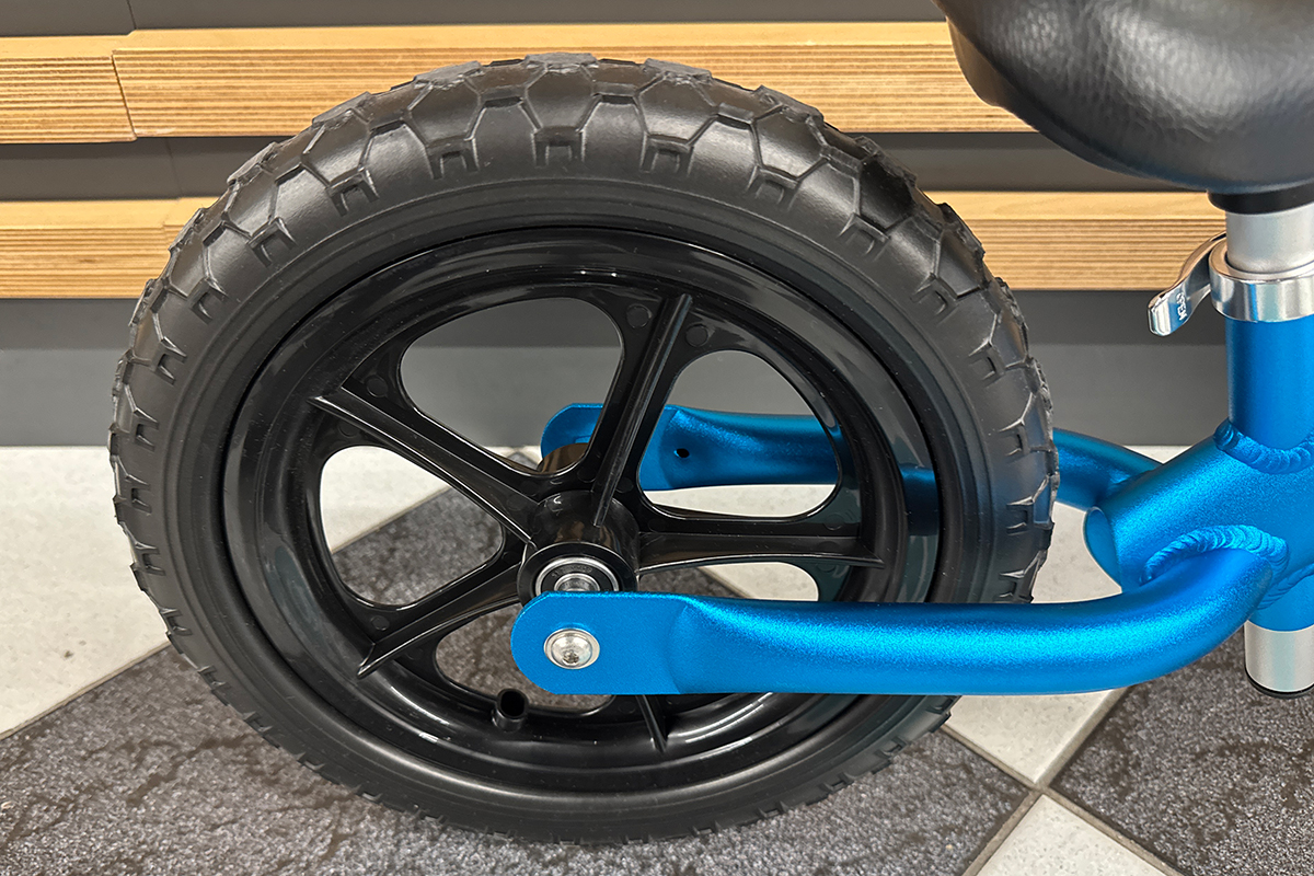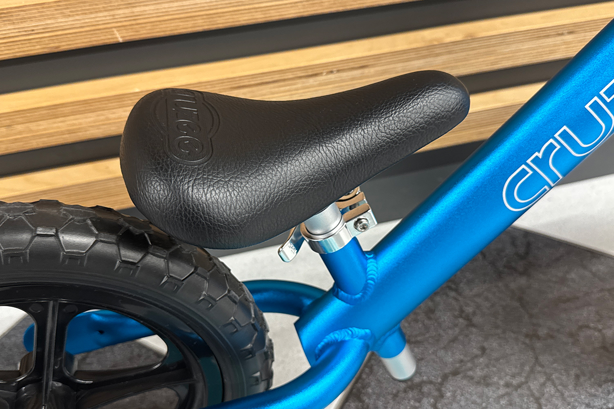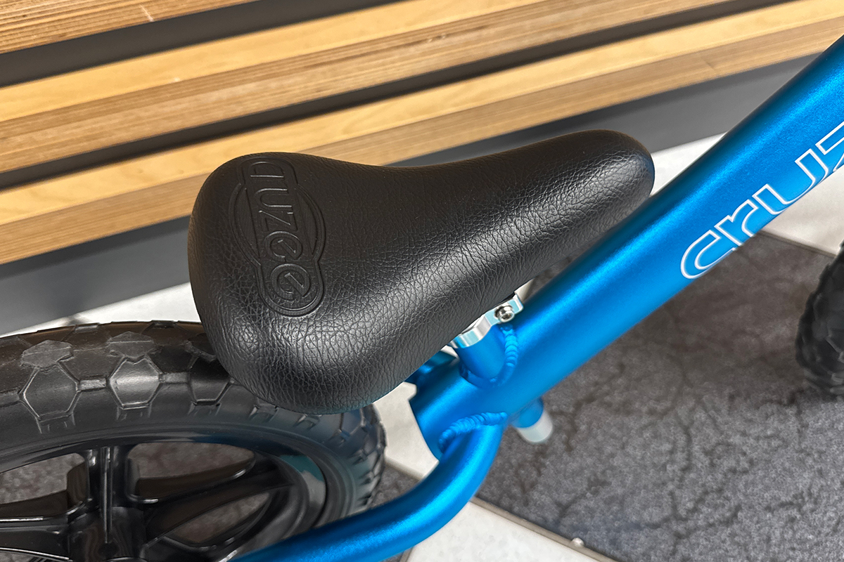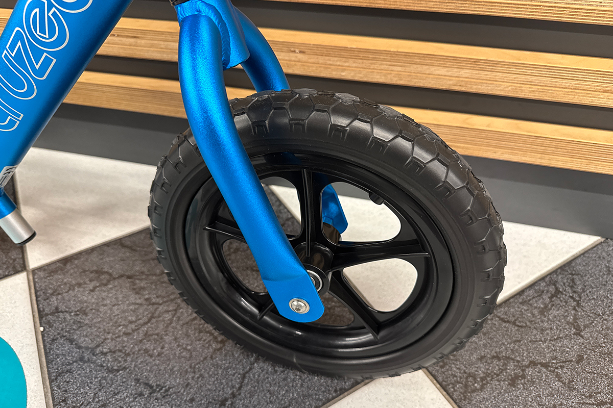 Rowerek Cruzee wyposażony jest w 12 calowe koła. Miękkie, piankowe opony świetnie sprawdzają się zarówno w domu jak i na zewnątrz. Zapewniają komfortową i cichą jazdę, są bezobsługowe, tzn. nie ma ryzyka przebicia ani potrzeby pompowania. Szczelne łożyska maszynowe w kołach zapewniają długi i bezawaryjny okres użytkowania. Siodełko rowerka biegowego Cruzee o ergonomicznym kształcie zapewnia stabilną i komfortową pozycję dziecka na rowerku oraz wspiera ruchy biegowe dziecka.