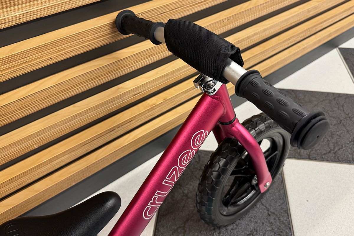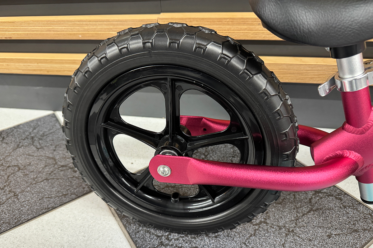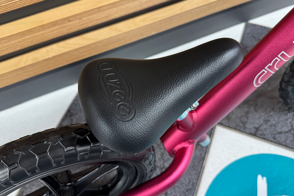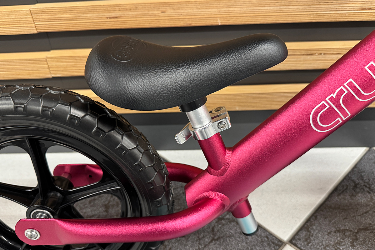 Rowerek Cruzee wyposażony jest w 12 calowe koła. Miękkie, piankowe opony świetnie sprawdzają się zarówno w domu jak i na zewnątrz. Zapewniają komfortową i cichą jazdę, są bezobsługowe, tzn. nie ma ryzyka przebicia ani potrzeby pompowania. Szczelne łożyska maszynowe w kołach zapewniają długi i bezawaryjny okres użytkowania. Siodełko rowerka biegowego Cruzee o ergonomicznym kształcie zapewnia stabilną i komfortową pozycję dziecka na rowerku oraz wspiera ruchy biegowe dziecka.