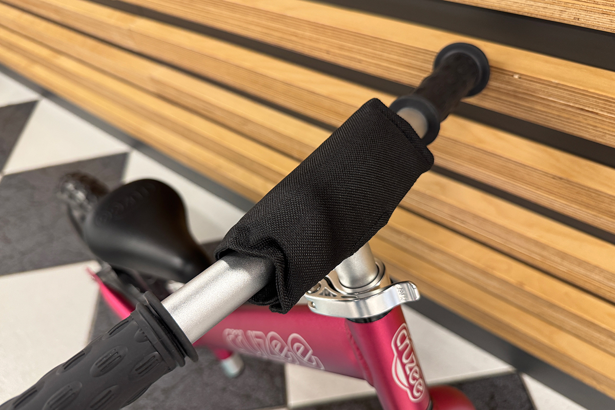 W rowerku biegowym Cruzee znajdziemy szereg zabezpieczeń. W rowerku biegowym Cruzee w wersji SAFE na kierownicy została umieszczona miękka poduszka mająca za zadanie uchronić główkę dziecka przed urazami podczas ewentualnej wywrotki. Ochraniacz montowany w bardzo prosty sposób, poprzez zapięcie go na kierownicy przy pomocy rzepów, co pozwala również na łatwe ściągnięcie go w razie potrzeby. Kierownica wyposażona jest także w czarne, gumowe uchwyty poszerzone na końcach. Sprawiają one, że rączki dziecka nie zsuwają się z kierownicy oraz chronią je przed niepotrzebnymi otarciami.