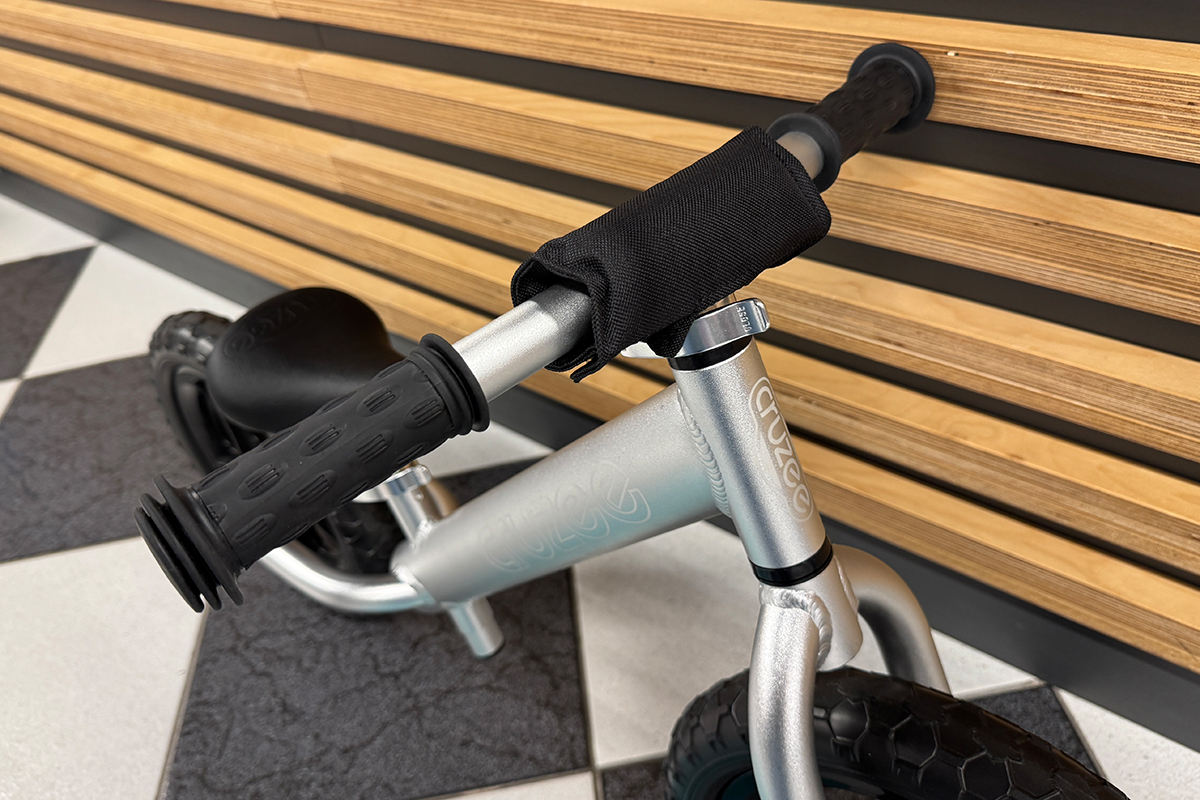 W rowerku biegowym Cruzee znajdziemy szereg zabezpieczeń. W rowerku biegowym Cruzee w wersji SAFE na kierownicy została umieszczona miękka poduszka mająca za zadanie uchronić główkę dziecka przed urazami podczas ewentualnej wywrotki. Ochraniacz montowany w bardzo prosty sposób, poprzez zapięcie go na kierownicy przy pomocy rzepów, co pozwala również na łatwe ściągnięcie go w razie potrzeby. Kierownica wyposażona jest także w czarne, gumowe uchwyty poszerzone na końcach. Sprawiają one, że rączki dziecka nie zsuwają się z kierownicy oraz chronią je przed niepotrzebnymi otarciami.