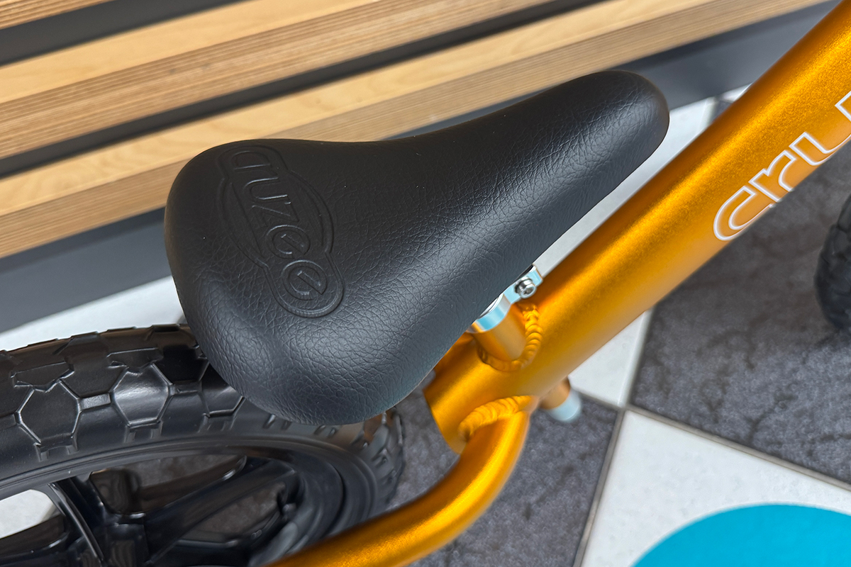 Siodełko w rowerku biegowym Cruzee posiada ergonomiczny kształt. Zapewnia stabilną i komfortową pozycję dziecka na rowerku oraz wspiera ruchy biegowe dziecka.