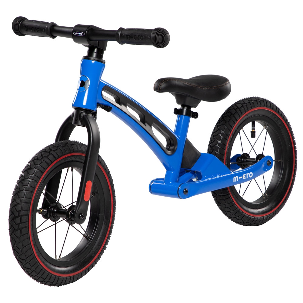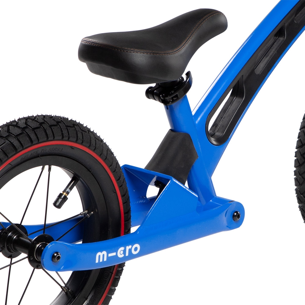 Znając możliwości maluchów i ich pomysły na nowe trasy w rowerku biegowym Micro Balance Bike Deluxe umieszczono duże koła 12" wraz z pompowanymi, bieżnikowanymi oponami. Dzięki temu rowerek jest znacznie bardziej uniwersalny. Pozwala to na jazdą po różnej nawierzchni od asfaltowych ścieżek do szutrowych dróg. Jazda na rowerze bez pedałów Micro Balance Bike Deluxe jest znacznie bardziej bezpieczna nawet po wilgotnej nawierzchni. Koła rowerka biegowego Micro obsługiwane są przez wysokiej klasy mechaniczne łożyska, które zapewniają płynne toczenie i przyjemną jazdę.