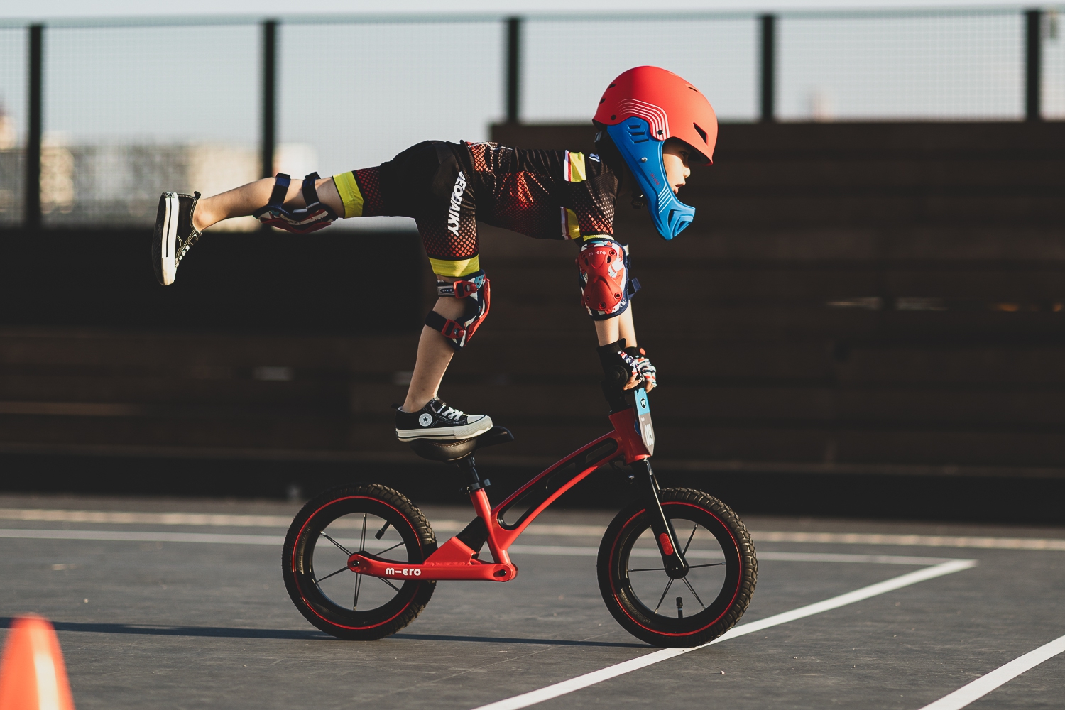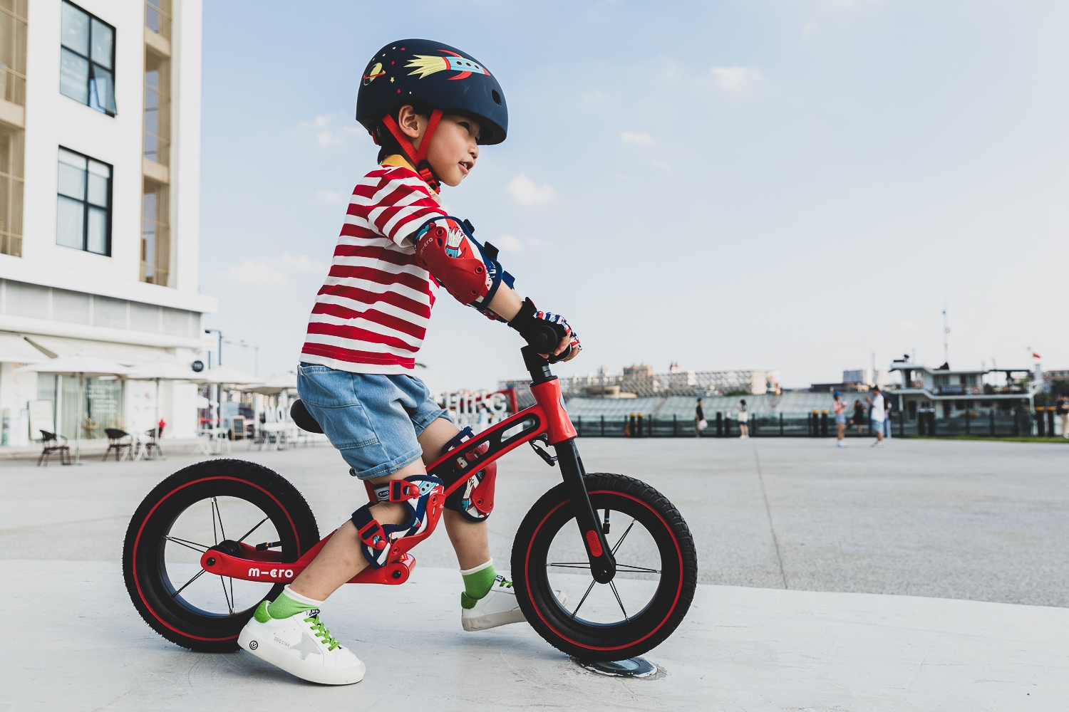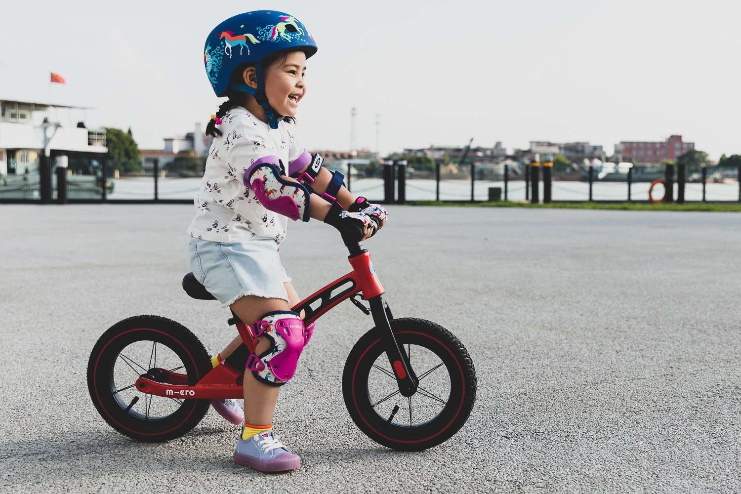 Rowerek biegowy Micro Balance Bike skonstruowany jest tak, aby utrzymanie równowagi, a także sama jazda były jak najbardziej bezpieczne. Nisko prowadzona rama ułatwia wsiadanie oraz zsiadanie, a także obniża środek ciężkości ułatwiając utrzymanie równowagi dziecku. Kierownica rowerka balansowego Micro Balance Bike Deluxe osadzona jest na mostku AHEAD, który utrzymuje ją na stałym poziomie wspierając prawidłową sylwetkę dziecka podczas jazdy na rowerku. Ponadto kierownica ma możliwość regulacji od 52 do 55 cm. Wyprofilowane gumowe uchwyty czynią chwyt pewnym, a poszerzenia na ich końcach zapobiegają zsuwaniu się dziecięcych dłoni podczas jazdy. Praktycznym rozwiązaniem jest uchwyt znajdujący się na tyle siodełka, który ułatwia jego transport, a przede wszystkim ułatwia asekurację przez opiekuna podczas pierwszych kroków na biegówce.
