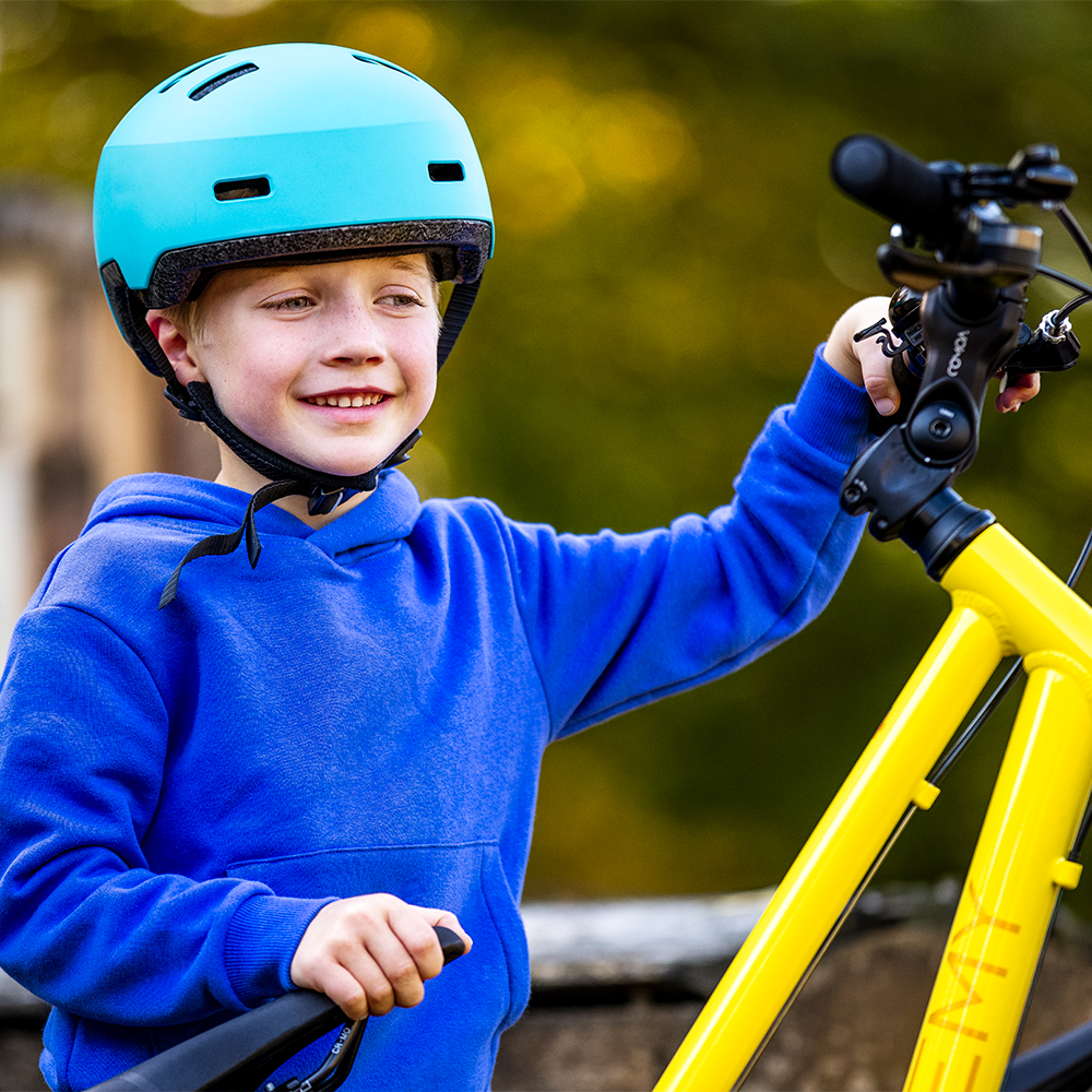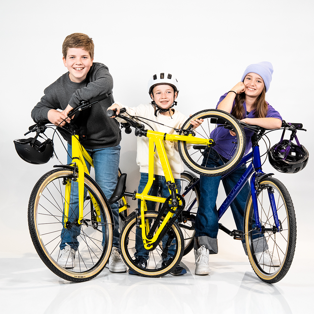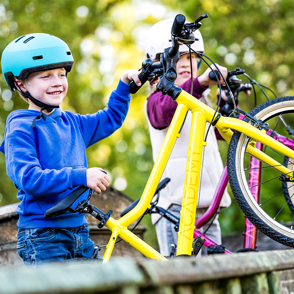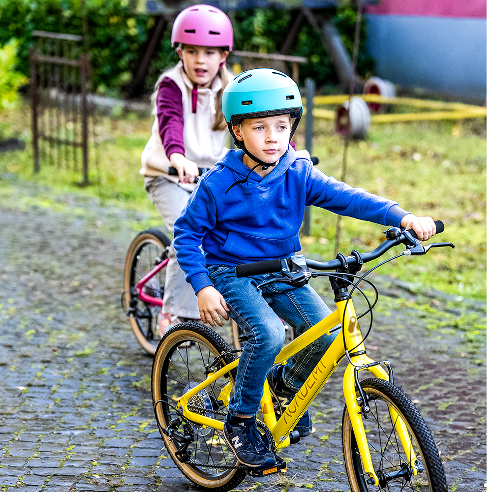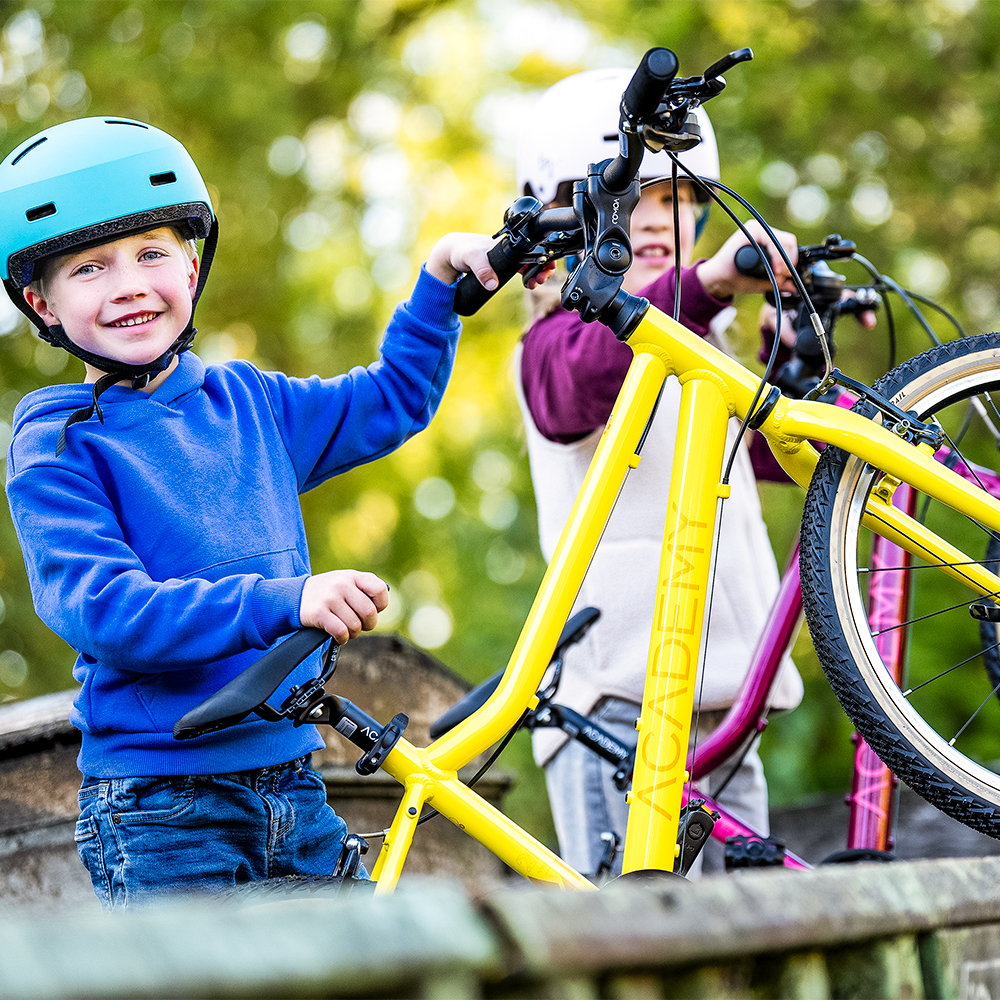 - ergonomiczne, aluminiowe klamki hamulca z regulowanym zasięgiem, dostosowane do dziecięcych dłoni, zapewniające płynne hamowanie