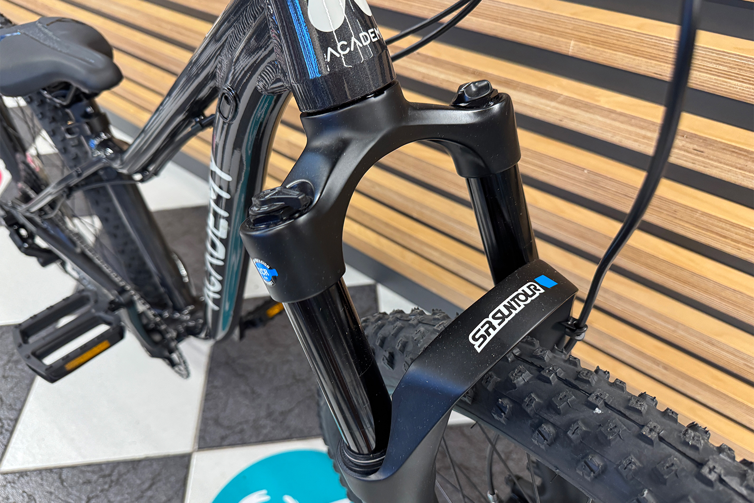 - amortyzowany olejowo-powietrzny SR Suntour F25-RAIDON34-JR-BOOST, skok 100 mm. regulowane tłumienie dobicia i odbicia