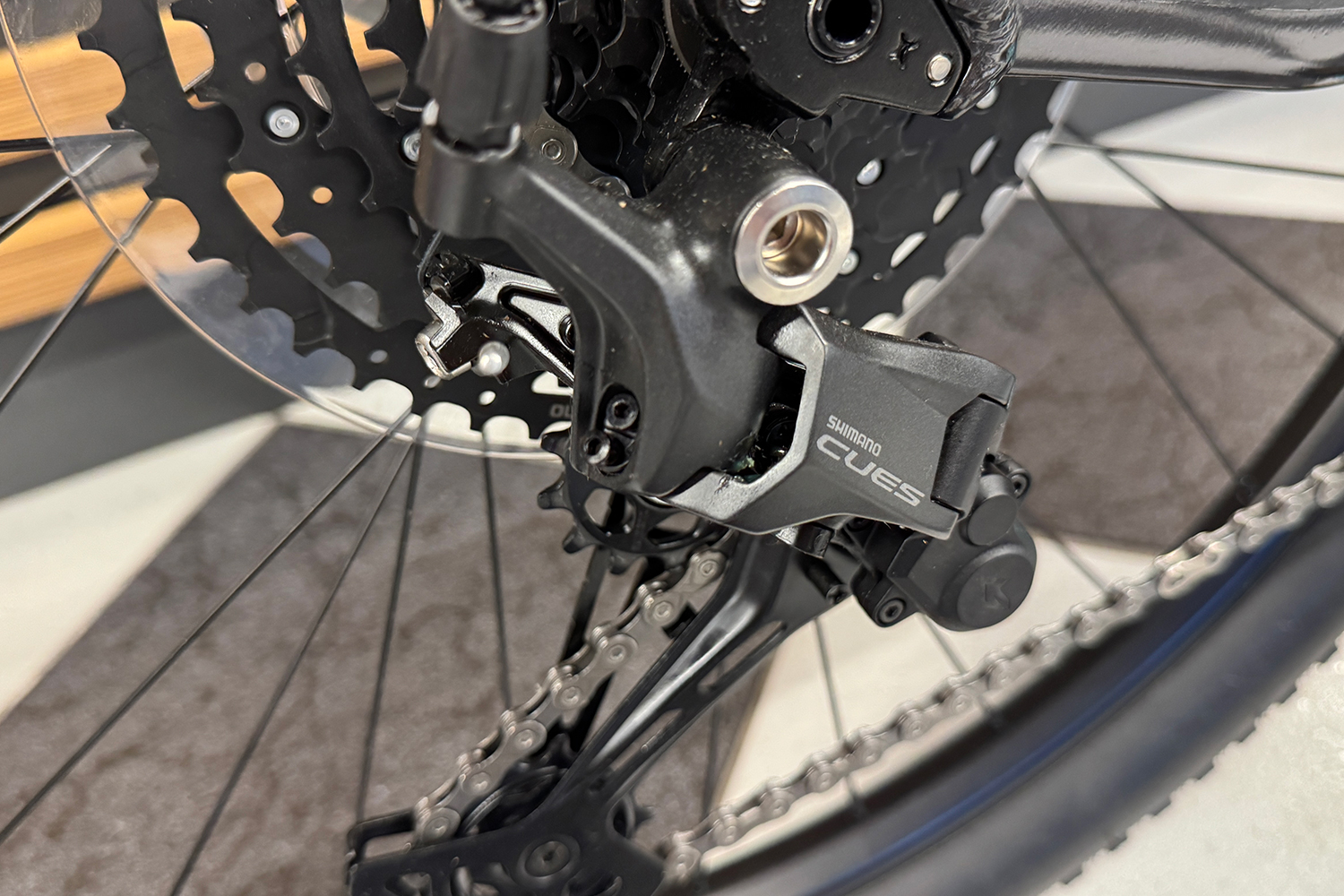 - przerzutki Shimano RD-U6000 CUES 10 przełożeń, stery zintegrowane, aluminiowe obręcze i piasty, hydrauliczne hamulce tarczowe Shimano