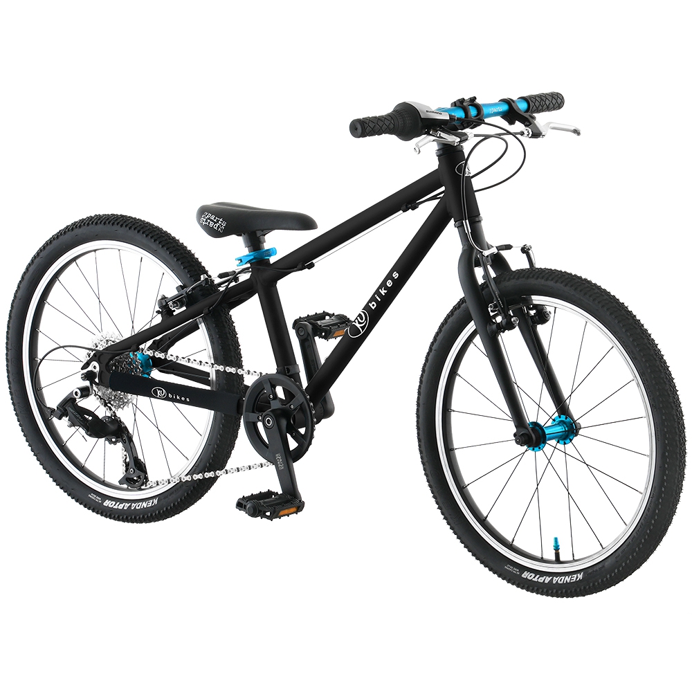 Rower dziecięcy KUBIKES 20L o rozmiarze kół 20" i ramie L to jeden z najlżejszych rowerów dla dzieci. Przeznaczony jest dla dzieci od 5 roku życia bądź tych, które osiągnęły już 110 cm wzrostu. Konstrukcja ramy oraz zastosowanie najwyższej jakości aluminium sprawia, iż rower waży 7,8 kg. 8 biegowa przerzutka microSHIFT Mezzo obsługiwana przez obrotową manetkę Revoshift Shimano. Rower dziecięcy Kubikes 20 został wyposażony w precyzyjne hamulce v-brake. Opony Kenda Aptor 20 x 1.75″ świetnie się sprawdzą zarówno na asfaltowej drodze, jak i w trudniejszym terenie. Siodełko roweru regulowane jest w zakresie od 53 do 68 cm. Kierownica w rowerze Kubikes 20L jest na wysokości 74 cm