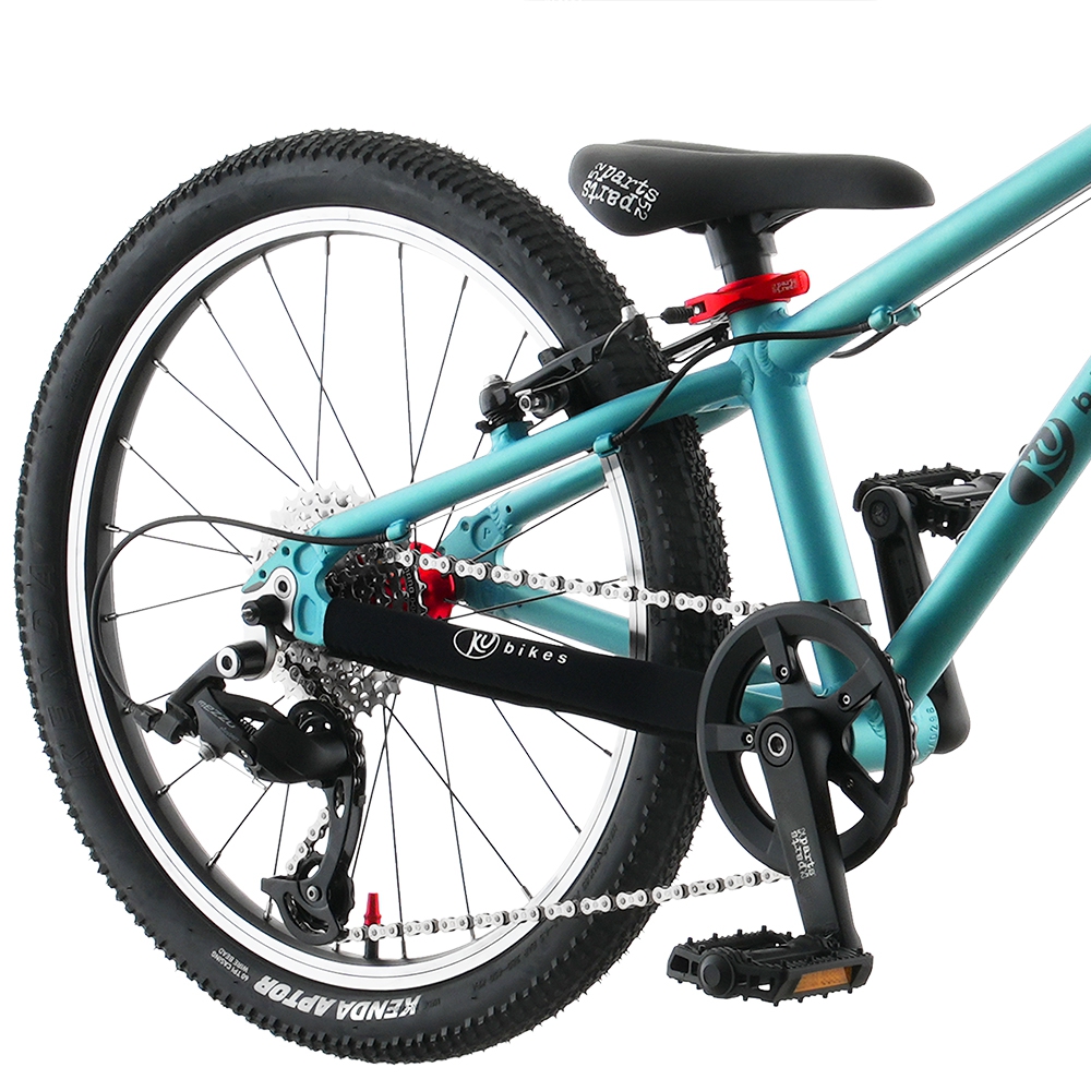 Rower dziecięcy KUBIKES 20S o rozmiarze kół 20" i ramie S to jeden z najlżejszych rowerów dla dzieci. Przeznaczony jest dla dzieci od 4 roku życia bądź tych, które osiągnęły już 105-110 cm wzrostu. Konstrukcja ramy oraz zastosowanie najwyższej jakości aluminium sprawia, iż rower waży 7,6 kg. 8 biegowa przerzutka microSHIFT Mezzo obsługiwana przez obrotową manetkę Revoshift Shimano. Rower dziecięcy Kubikes 20 został wyposażony w precyzyjne hamulce v-brake. Opony Kenda Aptor 20 x 1.75″ świetnie się sprawdzą zarówno na asfaltowej drodze, jak i w trudniejszym terenie. Siodełko roweru regulowane jest w zakresie od 53 do 66 cm. Kierownica w rowerze Kubikes 20S jest na wysokości 70 cm