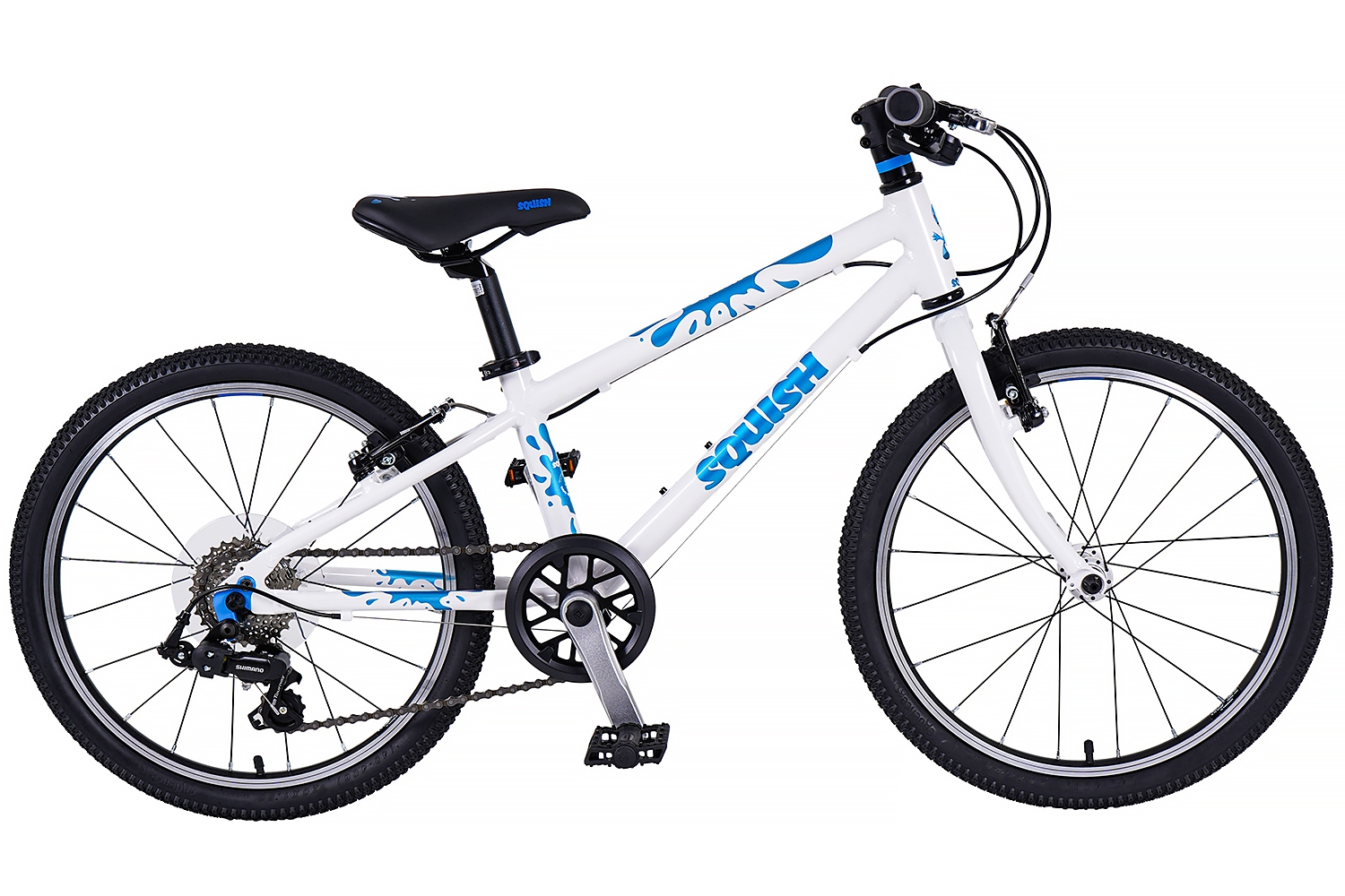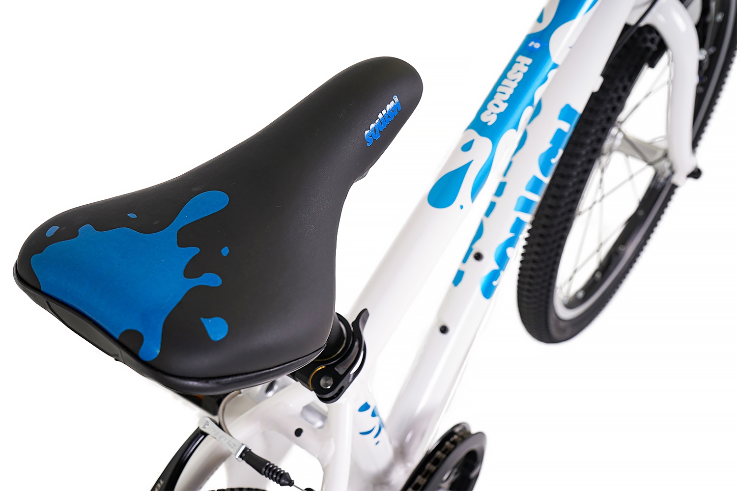 Dziecięcy rower Squish 20 to rower dla dzieci, które potrafią już jeździć i potrzebują czegoś więcej. Ten model posiada 7-biegową przerzutkę sprawiając, iż jest dużo bardziej uniwersalny. Dziecięcy rower Squish 20 waży ledwie 8,3 kg! Jest niesamowicie lekki dzięki 10” ramie wykonanej z potrójnie cieniowanego, wysokiej jakości stopu aluminium 6061. Cieniowanie to specjalistyczny proces, który polega na „odchudzeniu” ramy nie zmniejszając jej wytrzymałości. Model Squish 20” przeznaczony jest dla dzieci od 6 roku życia. Wygodne siodełko posiada płynną regulację wysokości w zakresie od 55,5 do 65 cm więc już dzieci o wzroście ok. 113 cm i długości wewnętrznej nóżki 53,5 cm mogą swobodnie na nim jeździć. Aby wiedzieć jak prawidłowo zmierzyć długość nóżki dziecka zapoznaj się z naszym poradnikiem. Kierownica również jest regulowana od 69,5 do 73 cm umożliwiając dokładne dopasowanie roweru do warunków dziecka. Profil ramy ułatwia wsiadanie i zsiadanie z roweru oraz utrzymanie prawidłowej, stabilnej sylwetki co zdecydowanie ułatwia jazdę. Aby dowiedzieć się jak wybrać odpowiedni rower dla dziecka zachęcamy do przeczytania naszego wpisu na ten temat.