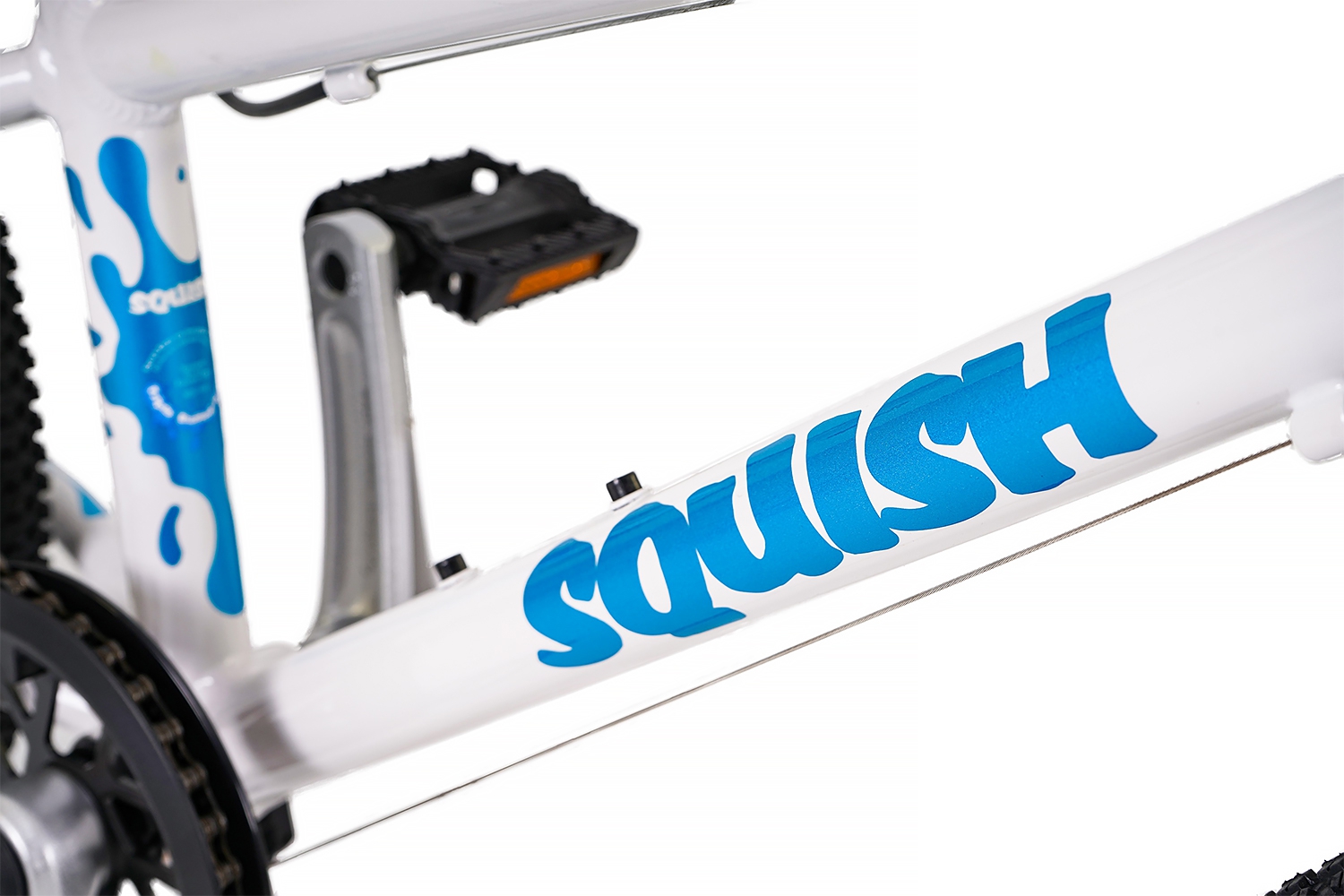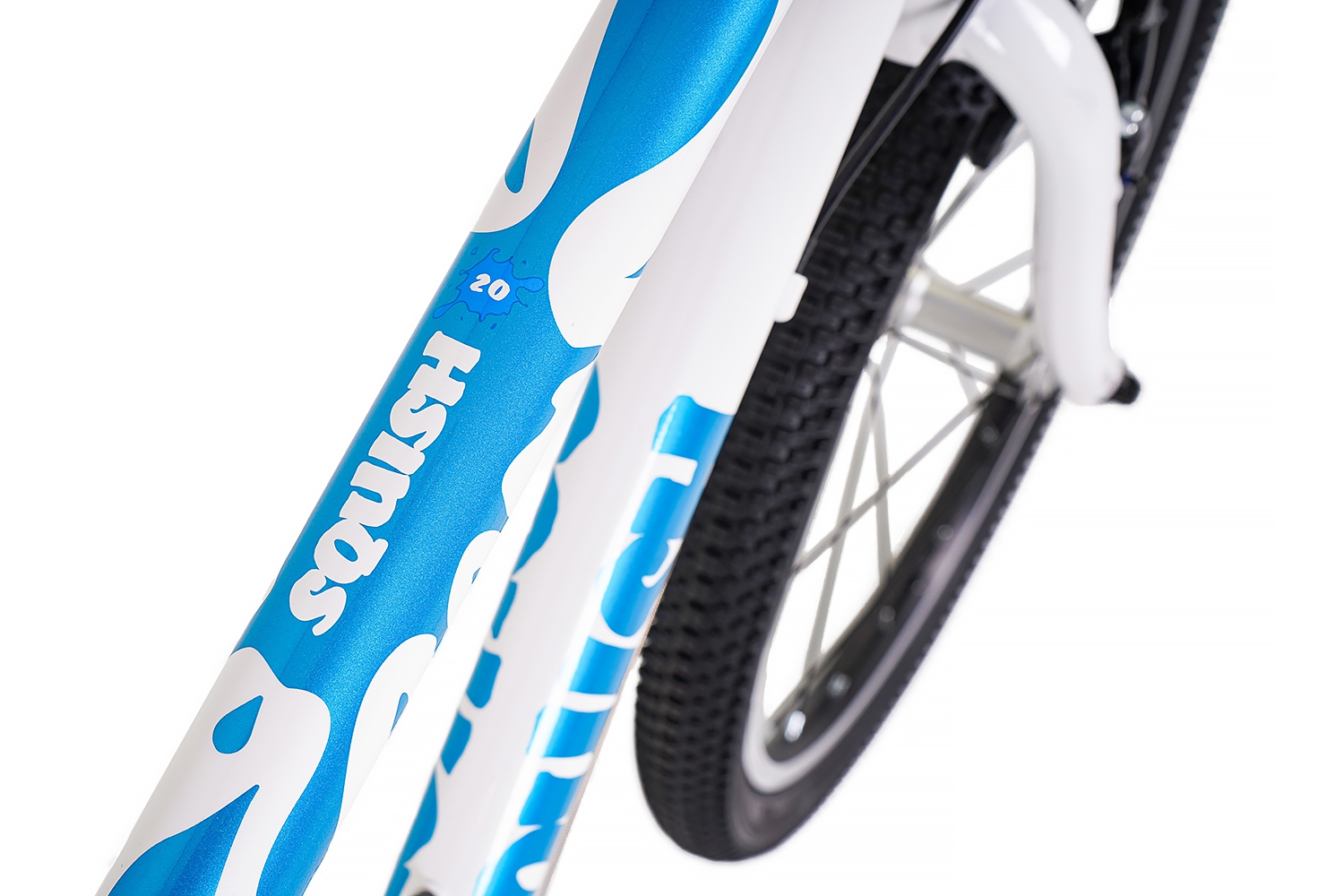 Rama roweru dziecięcego Squish 20” wykonana jest z potrójnie cieniowanego aluminium 6061. Zabieg ten sprawia, iż rower jest niezwykle lekki i wytrzymały. Waga całego roweru to zaledwie 8,3 kg. Profil ramy znacząco ułatwia naukę jazdy i pozytywnie wpływa na utrzymanie stabilnej pozycji podczas jazdy.