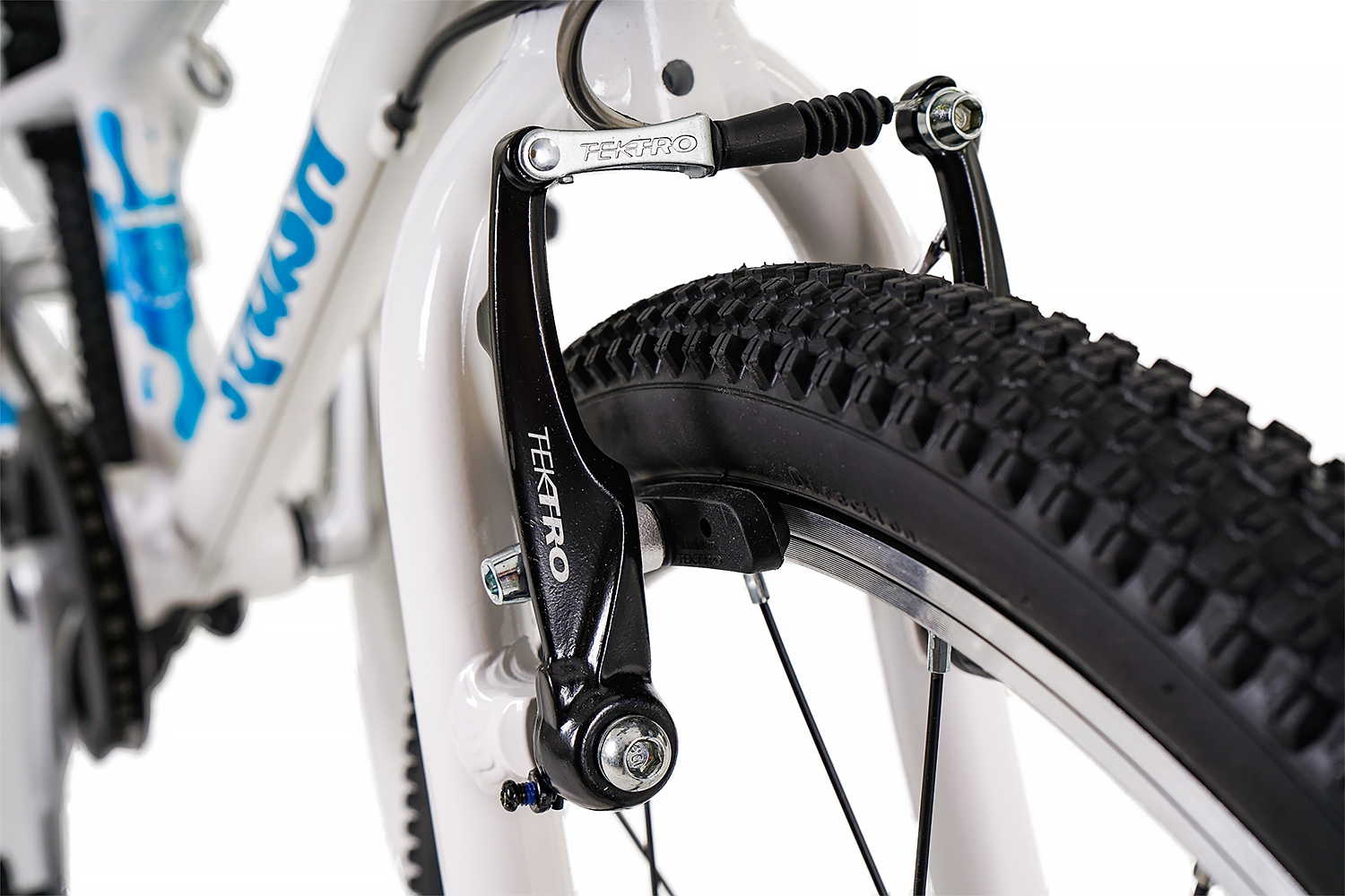 Wysokiej jakości hamulce v-brake renomowanej marki Tektro sprawiają, iż hamowanie jest bardzo płynne i bezpieczne. Hamulce są odpowiednio precyzyjne i czułe, aby maluch mógł spokojnie zahamować w dowolnym momencie.