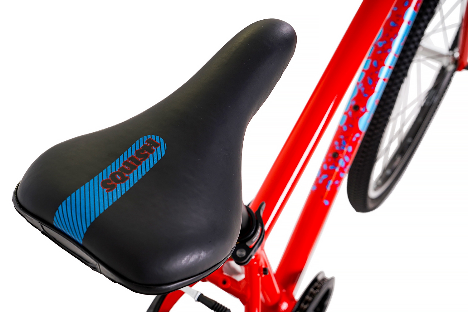 Priorytetem w rowerze dla dzieci Squish 26” jest bezpieczeństwo i wygoda młodego rowerzysty. Rower jest niezwykle lekki, aby ułatwić kontrolę i zapobiec urazom przy podczas wywrotki. Rower dziecięcy Squish 26” posiada jednak cały szereg innych rozwiązań, które sprawiają, że jazda na nim jest łatwa, lekka, a przede wszystkim bezpieczna dla każdego malucha. Podstawę komfortu stanowi ergonomiczne, bardzo wygodne siodełko z miękkiej pianki. Aby idealnie dopasować siodełko do warunków dziecka jest ono w pełni regulowane umożliwiając zmianę kąta jak i położenia względem kierownicy. A skoro już o kierownicy, w lekkim rowerze Squish 26” jest ona szeroka na 58cm zapewnia łatwe sterowanie oraz wygodną, sportową pozycję podczas jazdy. Istnieje również możliwość wyregulowania jej wysokości w zakresie 83,5 – 87 cm, a także kąta nachylenia. Za płynne kierowanie rowerem odpowiada ster a head 1 1/8” niwelując minidrgania. Uchwyty kierownicy wykonane są ze specjalnego tworzywa, które odpowiednio wyprofilowane zapewnia pewny chwyt. Na końcach uchwyty są specjalnie poszerzone, aby chronić przed ześlizgnięciem się rączki. Dziecięcy rower Squish 26” w swoim wyposażeniu posiada także dzwonek, odblaski na kołach, kierownicy oraz siodełku czyniąc pojazd jeszcze lepiej widocznym oraz słyszalnym zwiększając poziom bezpieczeństwa. W pudełku znajdziemy też squishowe naklejki pozwalając upiększyć swój rower czy też szafkę w pokoju :)