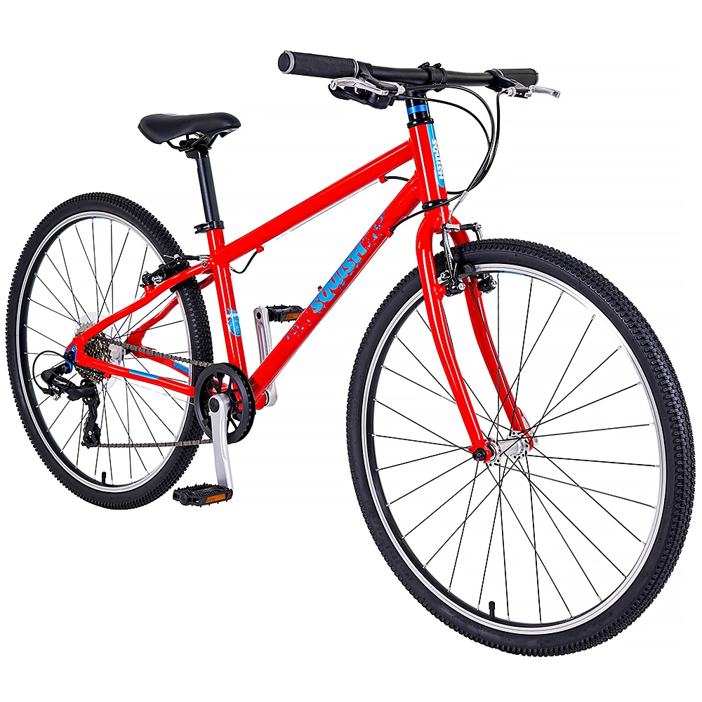 Dziecięcy rower Squish 26 to rower dla dzieci, które potrafią już jeździć i potrzebują czegoś więcej. Ten model posiada 8-biegową przerzutkę sprawiając, iż jest dużo bardziej uniwersalny. Dziecięcy rower Squish 26 waży ledwie 9,8 kg! Jest niesamowicie lekki dzięki 15” ramie wykonanej z potrójnie cieniowanego, wysokiej jakości stopu aluminium 6061. Cieniowanie to specjalistyczny proces, który polega na „odchudzeniu” ramy nie zmniejszając jej wytrzymałości. Model Squish 26” przeznaczony jest dla dzieci od 9 roku życia. Wygodne siodełko posiada płynną regulację wysokości w zakresie od 75 do 91 cm więc już dzieci o wzroście ok. 145 cm i długości wewnętrznej nóżki 70 cm mogą swobodnie na nim jeździć. Kierownica również jest regulowana od 83,5 do 87 cm umożliwiając dokładne dopasowanie roweru do warunków dziecka. Profil ramy ułatwia wsiadanie i zsiadanie z roweru oraz utrzymanie prawidłowej, stabilnej sylwetki co zdecydowanie ułatwia jazdę. Zachęcamy do zapoznania się z naszym wpisem na blogu, aby dowiedzieć się czym kierować się podczas wyboru roweru dla dziecka.