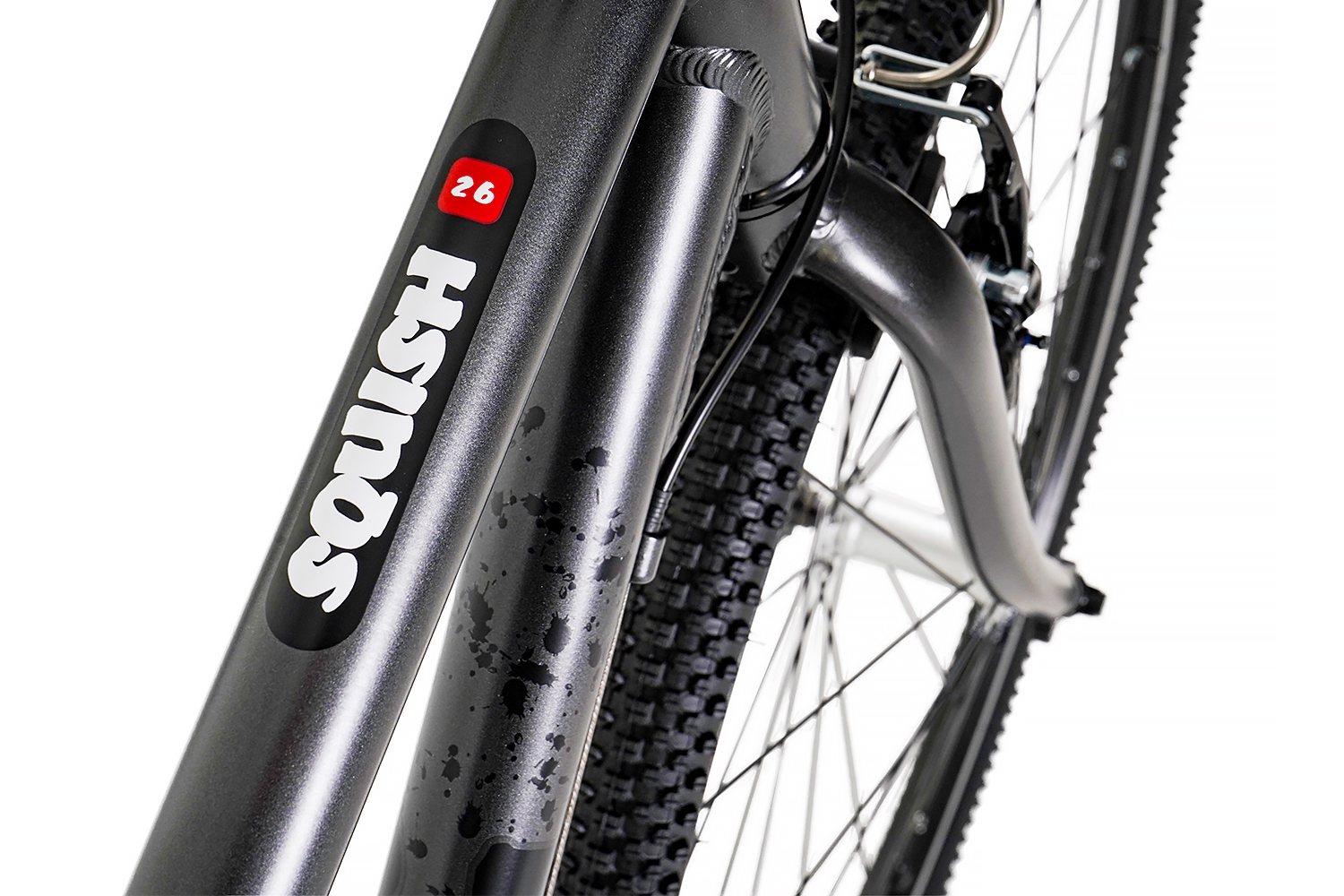 Dziecięcy rower Squish 26 to rower dla dzieci, które potrafią już jeździć i potrzebują czegoś więcej. Ten model posiada 8-biegową przerzutkę sprawiając, iż jest dużo bardziej uniwersalny. Dziecięcy rower Squish 26 waży ledwie 9,8 kg! Jest niesamowicie lekki dzięki 13” ramie wykonanej z potrójnie cieniowanego, wysokiej jakości stopu aluminium 6061. Cieniowanie to specjalistyczny proces, który polega na „odchudzeniu” ramy nie zmniejszając jej wytrzymałości. Model Squish 26” przeznaczony jest dla dzieci od 9 roku życia. Wygodne siodełko posiada płynną regulację wysokości w zakresie od 68 do 86 cm więc już dzieci o wzroście ok. 145 cm i długości wewnętrznej nóżki 67 cm mogą swobodnie na nim jeździć. Kierownica również jest regulowana od 83,5 do 87 cm umożliwiając dokładne dopasowanie roweru do warunków dziecka. Profil ramy ułatwia wsiadanie i zsiadanie z roweru oraz utrzymanie prawidłowej, stabilnej sylwetki co zdecydowanie ułatwia jazdę. Zachęcamy do zapoznania się z naszym wpisem na blogu, aby dowiedzieć się czym kierować się podczas wyboru roweru dla dziecka.