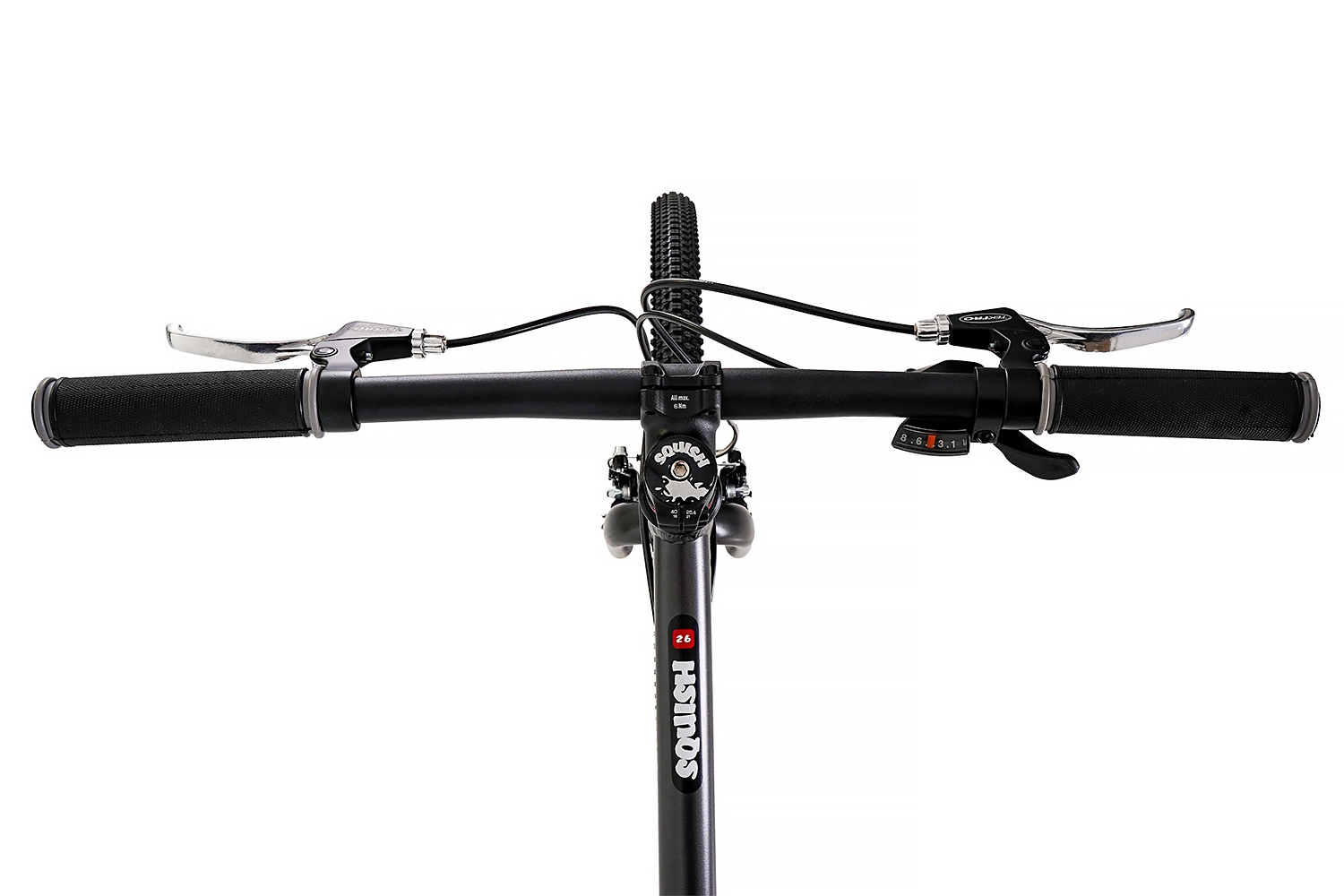 Priorytetem w rowerze dla dzieci Squish 26” jest bezpieczeństwo i wygoda młodego rowerzysty. Rower jest niezwykle lekki, aby ułatwić kontrolę i zapobiec urazom przy podczas wywrotki. Rower dziecięcy Squish 26” posiada jednak cały szereg innych rozwiązań, które sprawiają, że jazda na nim jest łatwa, lekka, a przede wszystkim bezpieczna dla każdego malucha. Podstawę komfortu stanowi ergonomiczne, bardzo wygodne siodełko z miękkiej pianki. Aby idealnie dopasować siodełko do warunków dziecka jest ono w pełni regulowane umożliwiając zmianę kąta jak i położenia względem kierownicy. A skoro już o kierownicy, w lekkim rowerze Squish 26” jest ona szeroka na 58cm zapewnia łatwe sterowanie oraz wygodną, sportową pozycję podczas jazdy. Istnieje również możliwość wyregulowania jej wysokości w zakresie 83,5 – 87 cm, a także kąta nachylenia. Za płynne kierowanie rowerem odpowiada ster a head 1 1/8” niwelując minidrgania. Uchwyty kierownicy wykonane są ze specjalnego tworzywa, które odpowiednio wyprofilowane zapewnia pewny chwyt. Na końcach uchwyty są specjalnie poszerzone, aby chronić przed ześlizgnięciem się rączki. Dziecięcy rower Squish 26” w swoim wyposażeniu posiada także dzwonek, odblaski na kołach, kierownicy oraz siodełku czyniąc pojazd jeszcze lepiej widocznym oraz słyszalnym zwiększając poziom bezpieczeństwa. W pudełku znajdziemy też squishowe naklejki pozwalając upiększyć swój rower czy też szafkę w pokoju :)