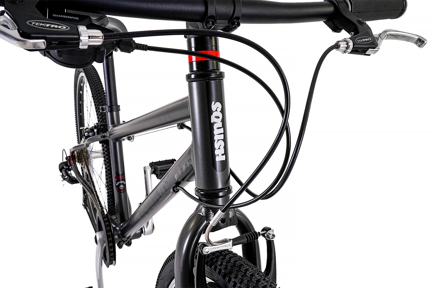 Rower dla dzieci Squish 26 posiada wysokiej jakości 8-biegową przerzutkę Shimano Tourney RD-TX800. Przerzutka obsługiwana jest klasyczną, bardzo lekko i płynnie działającą manetką na palec Shimano SL-M310. Takie rozwiązanie sprawia, iż rower jest znacznie bardziej uniwersalny oraz ułatwia pokonywanie dłuższych, bardziej wymagających tras. 8-rzędowa kaseta posiada rozstaw zębatek 11-32T co wraz z 32T zębami na korbie stanowi idealne proporcje dla młodego rowerzysty. Rower dla dzieci Squish 26 posiada także najwyższej jakości hamulce v-brake renomowanej firmy Tektro. Odpowiednio wyregulowane pozwalają bezpiecznie i płynnie zatrzymać rower z odpowiednią dla dzieci siłą. Klamki hamulcowe są specjalnie pomniejszone, aby pasowały do dziecięcych dłoni. Same klamki również można wyregulować przybliżając bądź oddalając je od kierownicy. Koła roweru dla dzieci Squish 26 o rozmiarze 26” z lekkimi, aluminiowymi obręczami i piastami posiadają wysokiej jakości, hybrydowe opony Kenda 26x1,5”. Dzięki temu sprawdzą się zarówno podczas jazdy po mieście jak i leśnych szlakach.