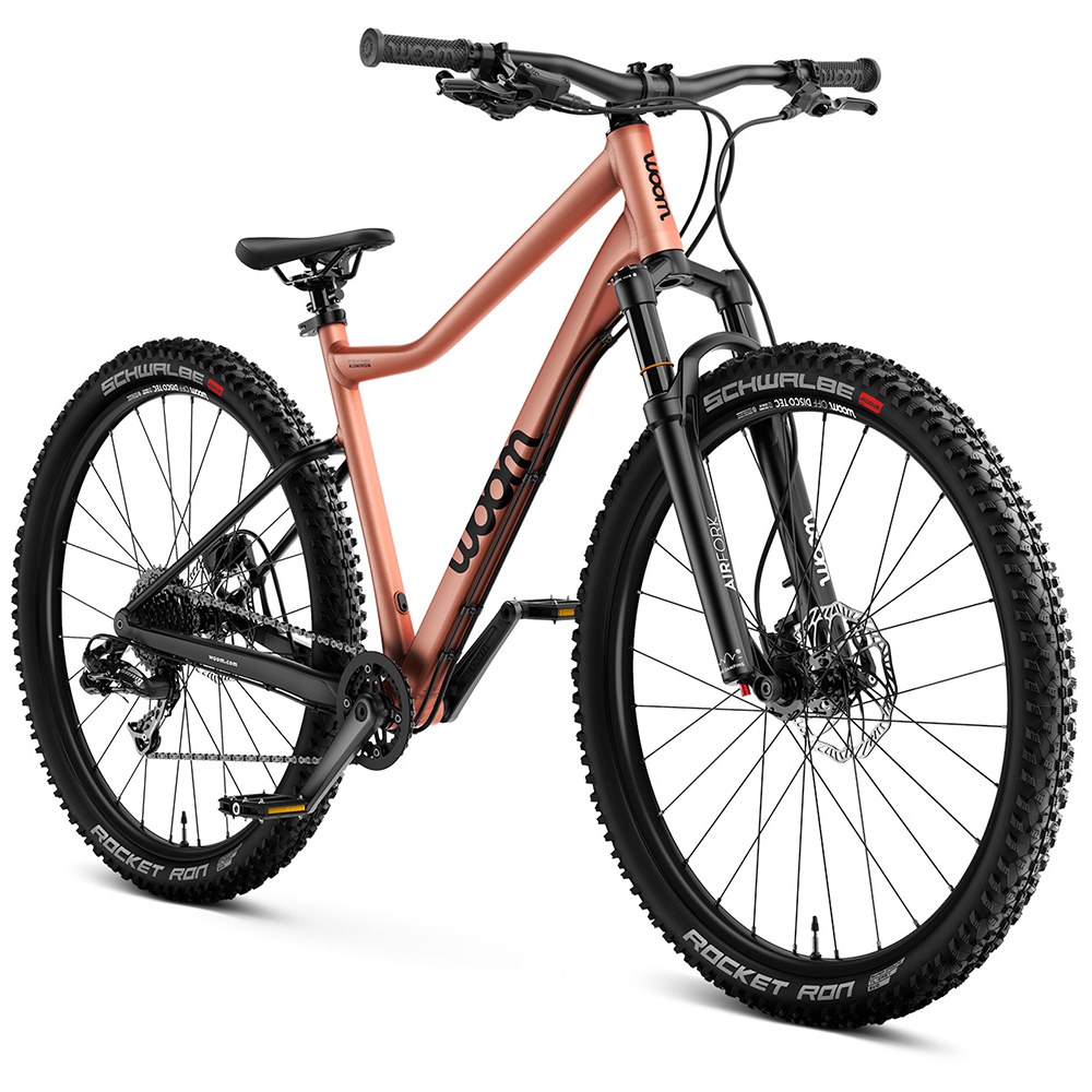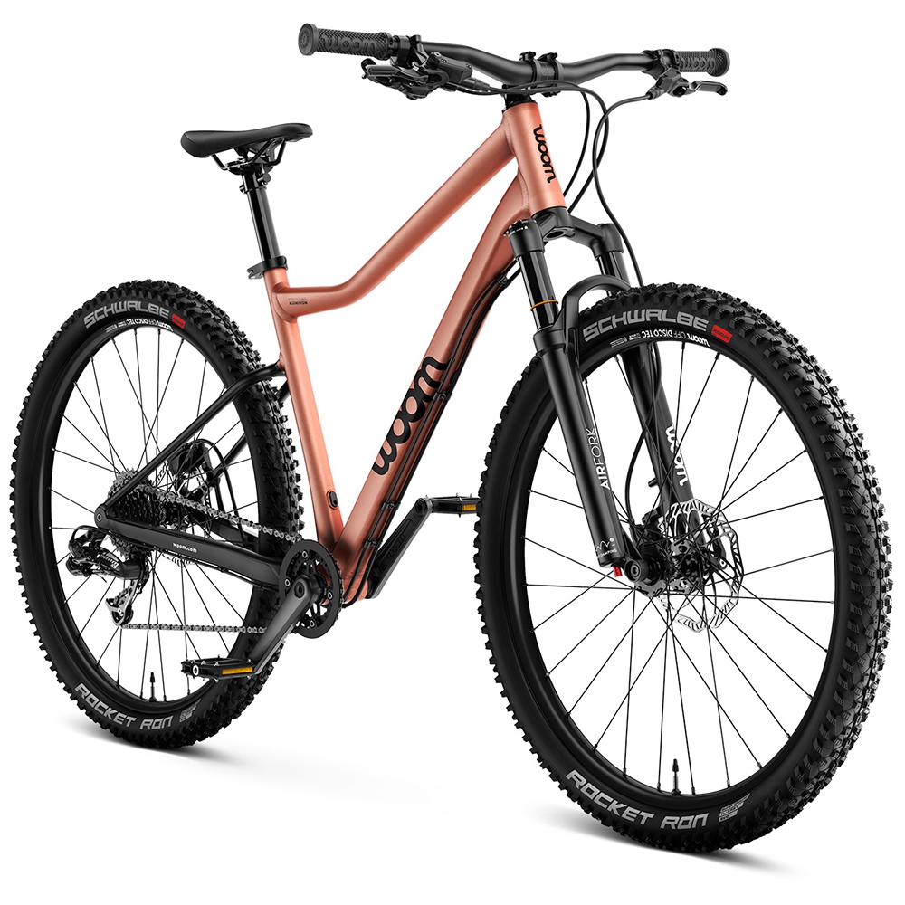 26 calowe koła roweru Woom 6 OFF AIR zbudowane są z ultralekkich obręczy aluminiowych typu OFF AIR Disco Tec. Koła montowane na szybkozamykaczach, co pozwala na szybki montaż oraz demontaż np. w razie wymiany dętki czy opony. A jeśli już o oponoach – górski rower Woom 6 OFF AIR posiada opony renomowanej marki Schwalbe. Model, którego użyto - Schwalbe Rocket Ron 26x2.25'' dostosowany do tras MTB wykonany z bardzo wytrzymałych materiałów z mieszanką gumy Addix Speed. Głęboki bieżnik i duża szerokość opon zapewniają doskonałą przyczepność, niski opór toczenia i dużą odporność na wszelakie uszkodzenia mechaniczne. Szczelne łożyska maszynowe sprawiają, iż jazda jest płynna i niemal bezszelestna nawet w najtrudniejszych warunkach.
