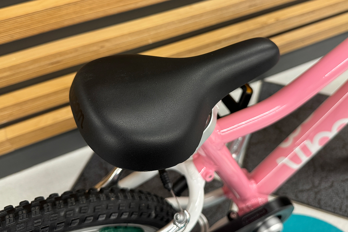Aby nauka jazdy przebiegała bardzo komfortowo, siodełko wykonane jest w ergonomicznym kształcie wspierającym pozycję rowerzysty. Siodełko osadzone jest na anodowanej na czarno sztycy, z oznaczeniami minimalnego oraz maksymalnego wysunięcia. Sztyca trzymana jest przez aluminiową obejmę z dźwignią, tzw. 'szybkozamykacz'.