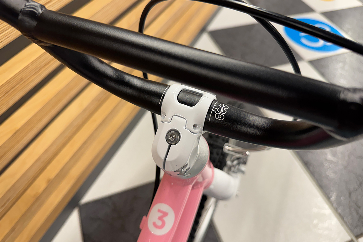 Anodowana na czarno kierownica w rowerku woom 3 GO AUTOMAGIC znajduje się na wysokości 70 cm, a jej szerokość to 50cm. Kierownica wykonana jest z aluminium, przez co jest bardzo lekka, co znacznie ułatwia kontrolę nad rowerem w trakcie jazdy. Kształt kierownicy inspirowany jest kierownicami rowerów BMX oraz jej wysokość, pozwalają uzyskać wygodną i komfortową pozycję. Rączki woom Ergogrip zapewniają odpowiedni oraz komfortowy chwyt i zapobiegają ślizganiu się dłoni, a ich szerokie zakończenia zwiększają bezpieczeństwo. Ponadto wykonane są bez użycia substancji szkodliwych. Kierownica osadzona jest na lekkim aluminiowym mostku, bezpiecznym dla dziecięcych kolan, ponieważ dzięki zastosowaniu przedniej śruby zaciskowej nie ma żadnych innych wystających śrub. Całość działa płynnie na uszczelnionych maszynowych łożyskach na których opierają się zintegrowane stery ahead o średnicy 1”. Możliwe jest założenie ogranicznika skrętu, aby młody rowerzysta nie stracił zbyt łatwo panowania nad kierownicą i wspomaga kontrolę nad rowerem.