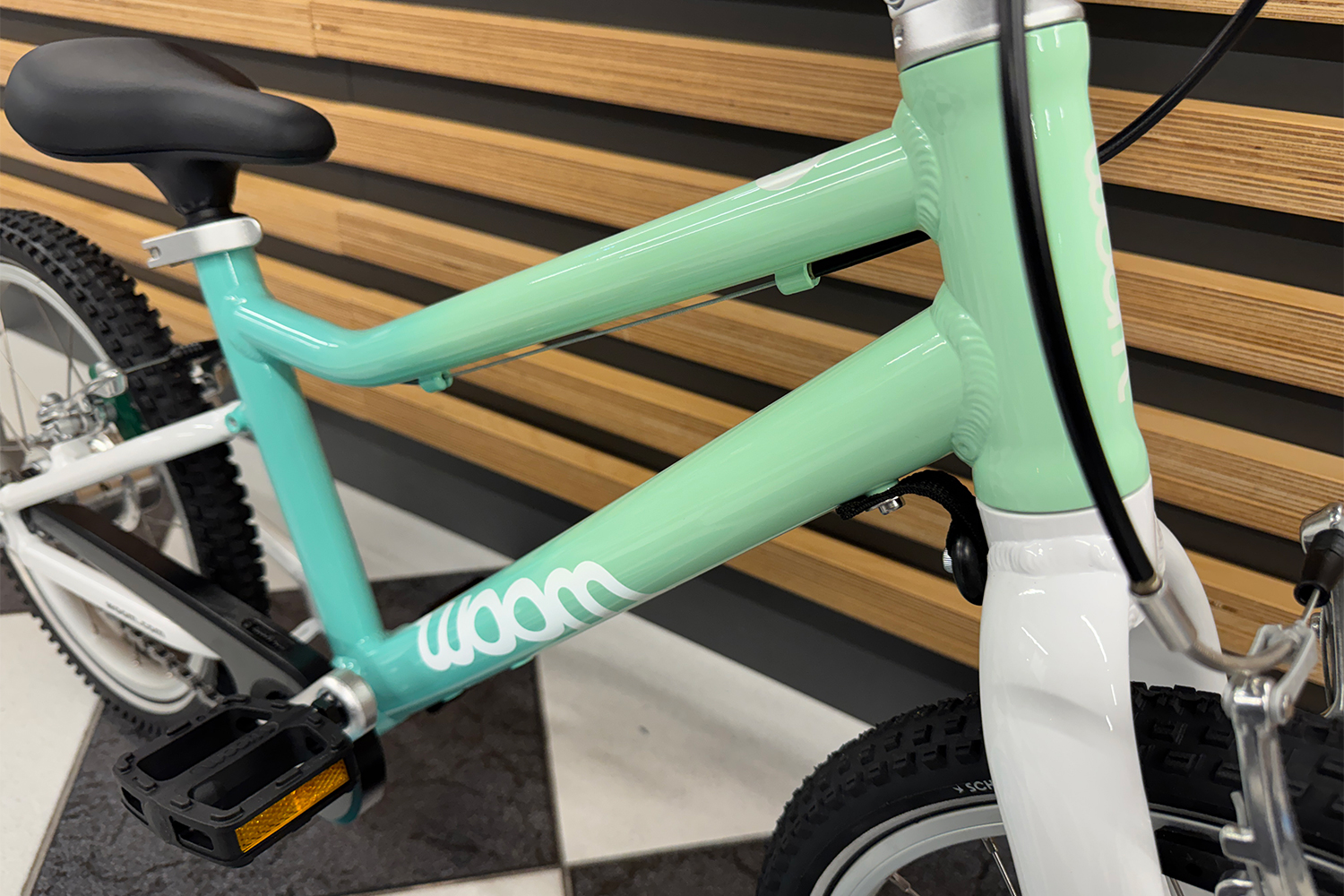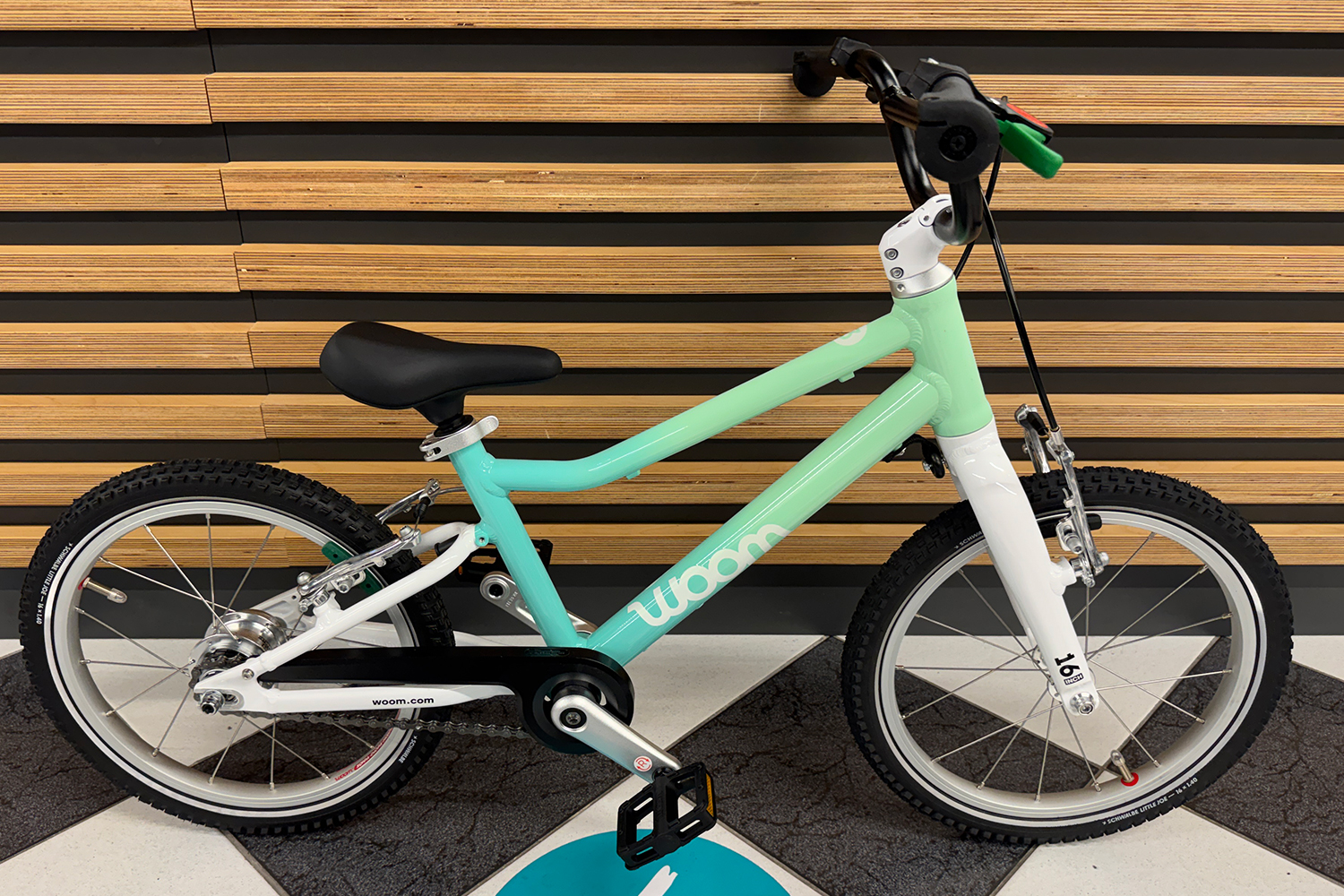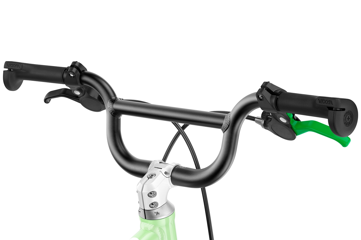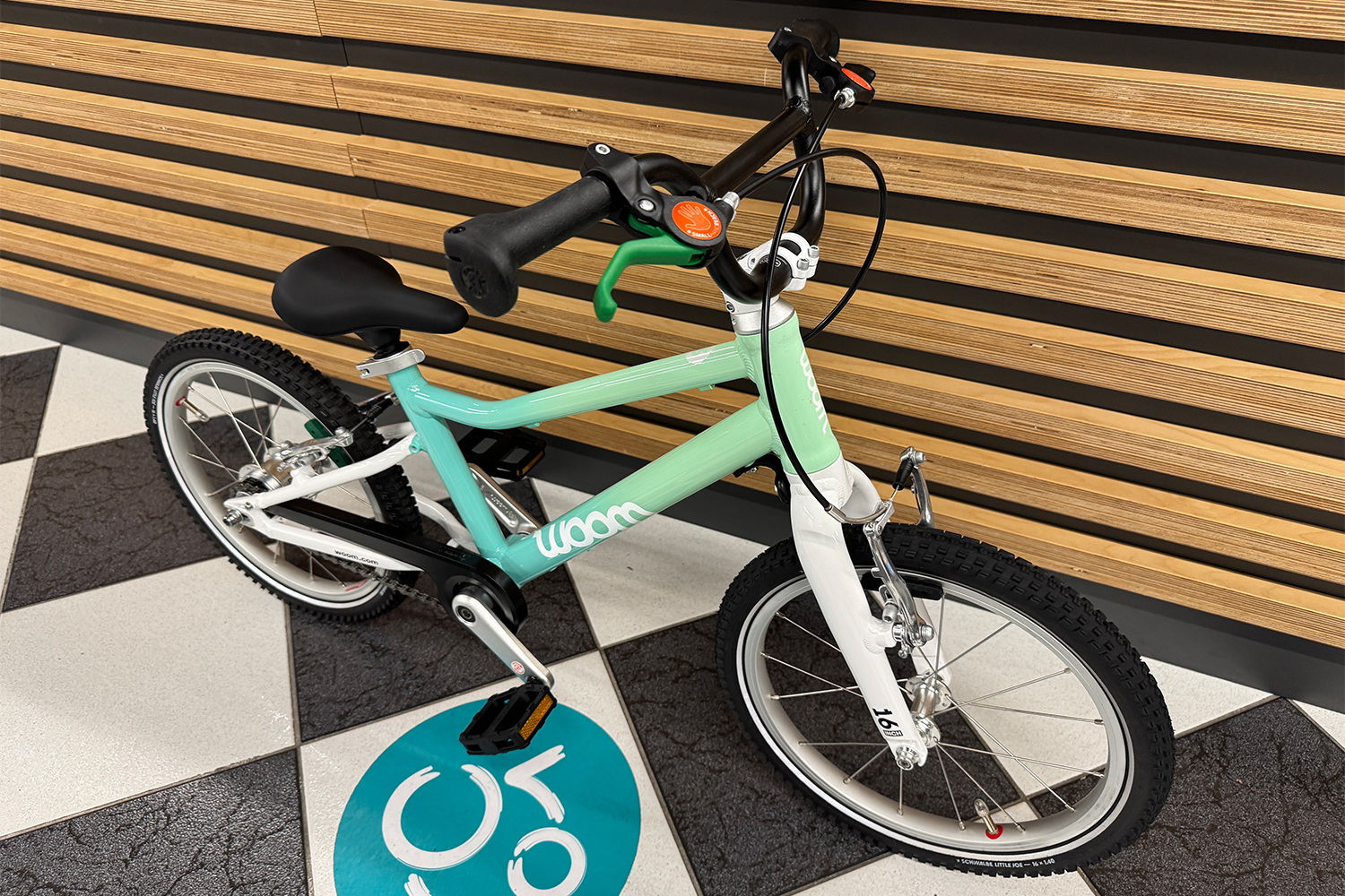 W rowerze dziecięcym woom 3 GO zastosowano tradycyjne hamulce V-Brake, które są nie tylko bardziej praktyczne niż tzw 'kontra', ale także dzieci uczą się już używać hamulców, które będą im towarzyszyć przez całe życie. Klocki hamulcowe wykończone miękką okładziną zapewniają dużą i skuteczną siłę hamowania przy niedużej sile nacisku klamki hamulca. Jeśli już mowa o klamkach hamulcowych, to woom postanowił wspomóc dzieci na początku ich przygody i oznaczyć która klamka hamulcowa odpowiada za który hamulec – zielona klamka i zielone klocki hamulcowe to tylny hamulec; czarna klamka i czarne klocki to przedni hamulec. Takie rozwiązanie jest bardzo pomocne i pomaga dziecku rozróżnić hamulce, aby zapobiec przypadkowej pomyłce. Ponadto dźwignie hamulca są specjalnie 'pomniejszone' aby dopasować się do dziecięcych rączek. 16 calowe koła zostały wyposażone w aluminiowe obręcze oraz wysokiej klasy niemieckie opony Schwalbe o niskich oporach toczenia, co zapewnia bardzo komfortową i przyjemną jazdę. Ponadto opony posiadają odblaskowy pasek, który zwiększa bezpieczeństwo i widoczność rowerzysty po zmroku.