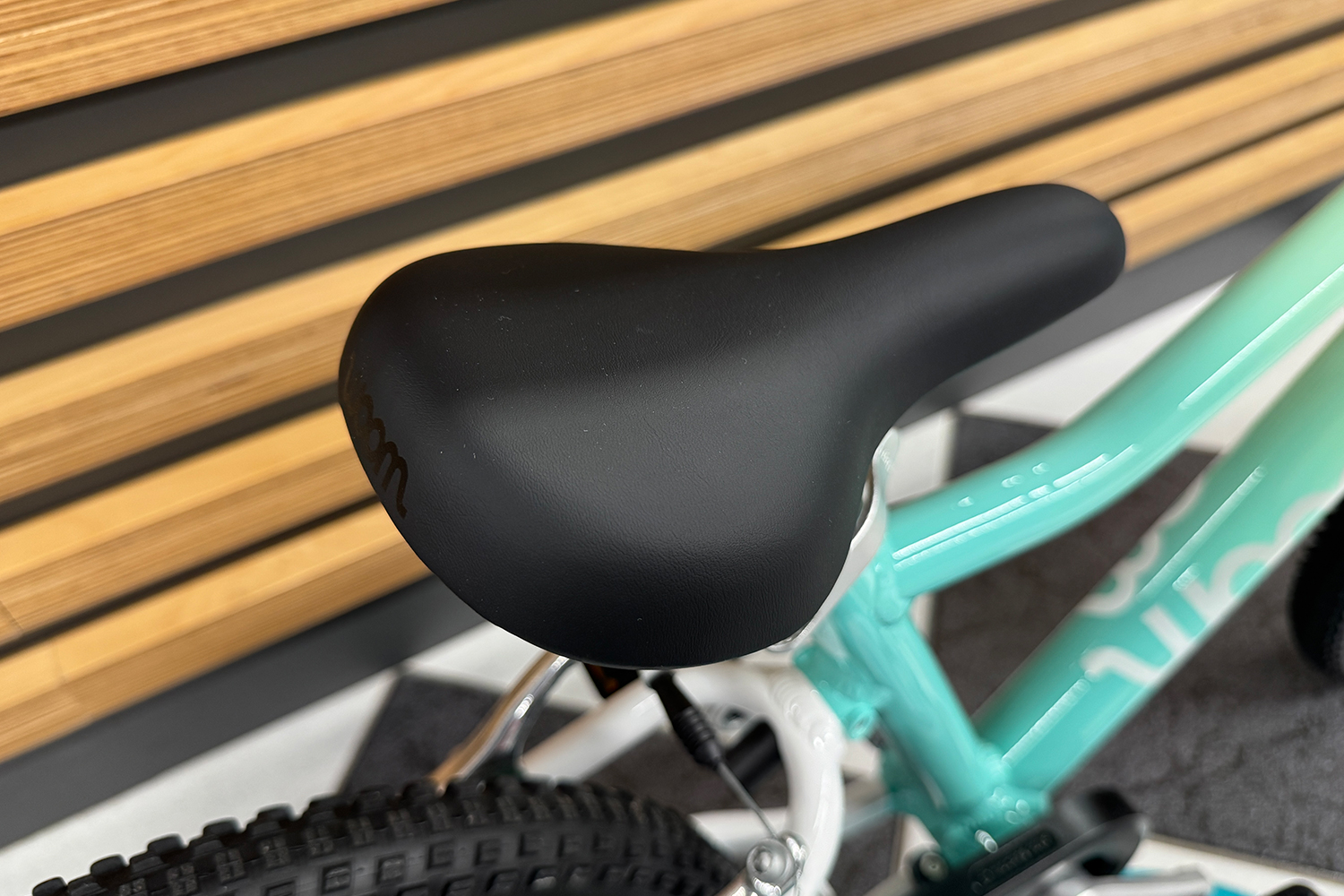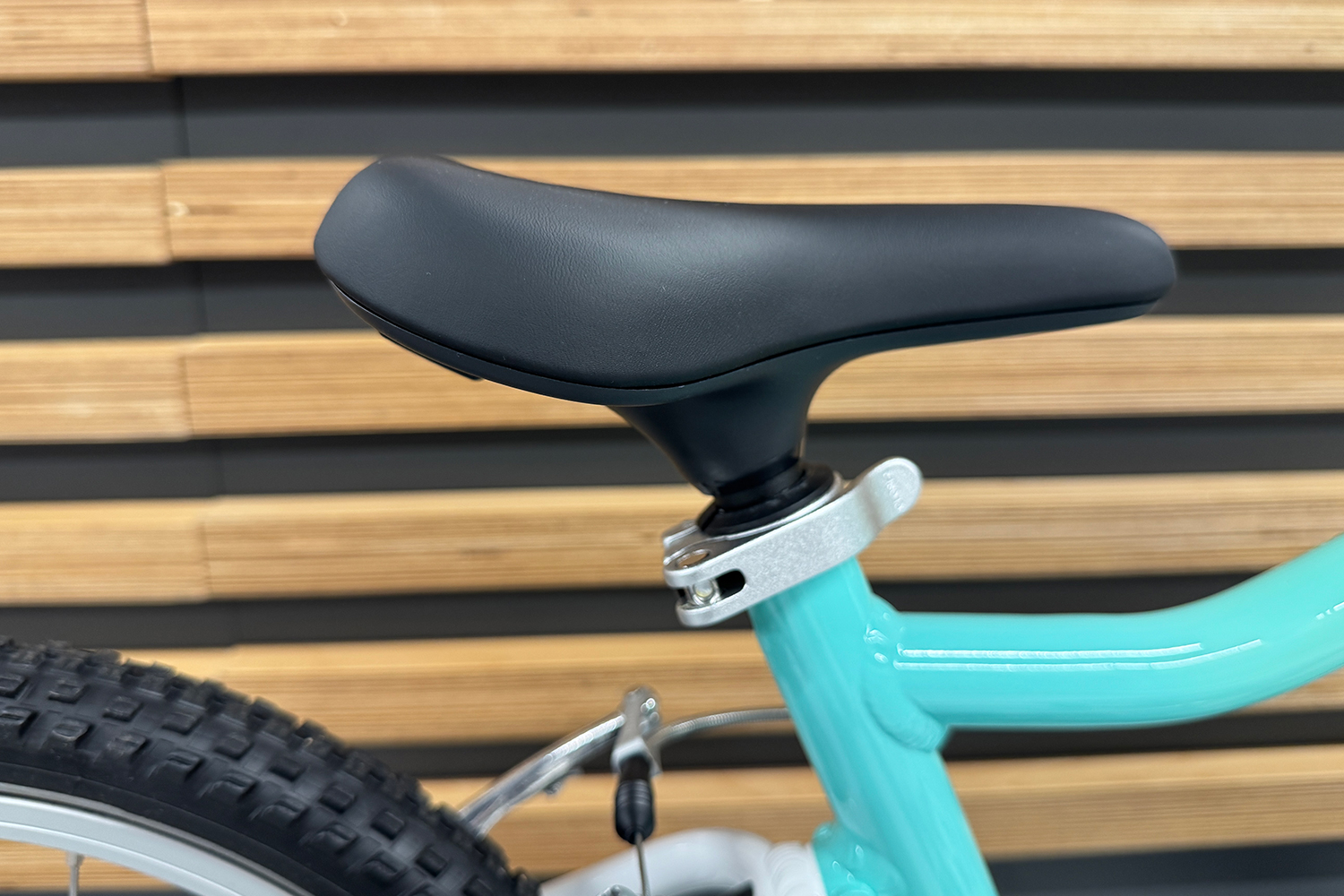 Aby nauka jazdy przebiegała bardzo komfortowo, siodełko wykonane jest w ergonomicznym kształcie wspierającym pozycję rowerzysty. Siodełko osadzone jest na anodowanej na czarno sztycy, z oznaczeniami minimalnego oraz maksymalnego wysunięcia. Sztyca trzymana jest przez aluminiową obejmę z dźwignią, tzw. 'szybkozamykacz'.
