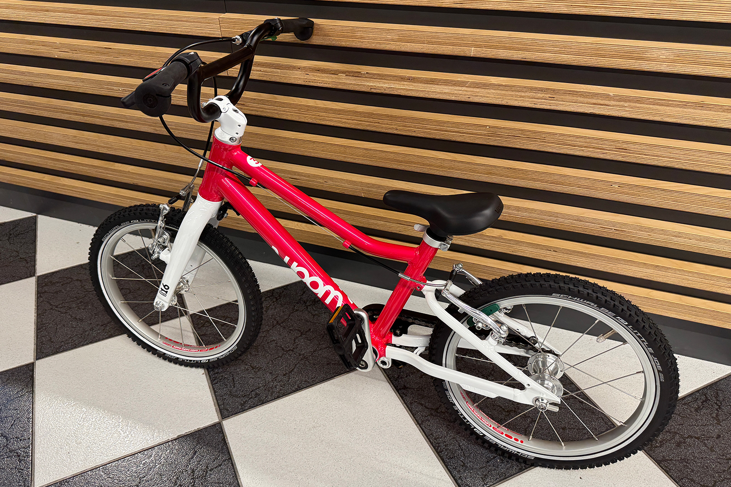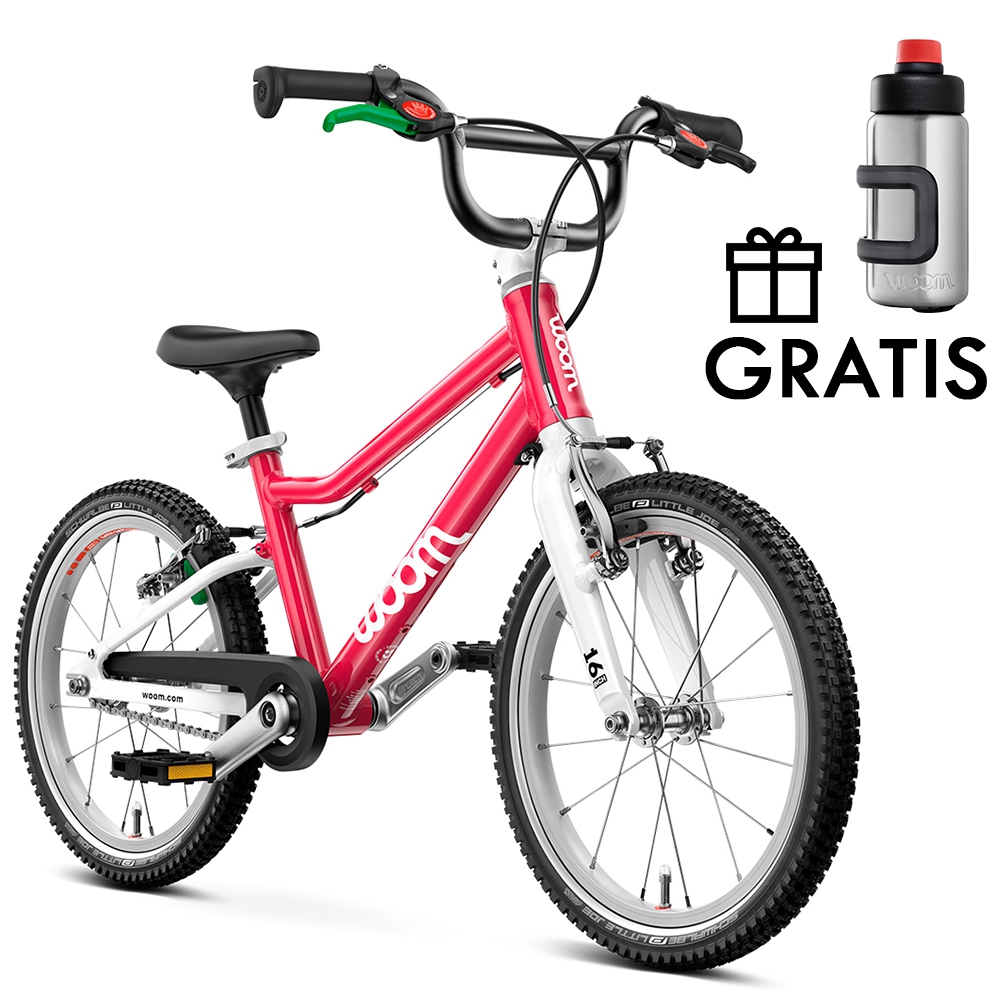 Rower dziecięcy woom 3 GO na 16" kołach posiada ramę wykonaną w całości z bardzo lekkiego stopu aluminium 6061, dzięki czemu waga całego roweru wynosi tylko 5.6 kg! Rozmiar ramy jest dostosowany dla dzieci w wieku od około 4 do 6 lat, a kierując się wzrostem – od około 105 cm. Minimalna wysokość siodełka wynosi 48 cm natomiast maksymalna to 64 cm. Nisko poprowadzona rama ułatwia wsiadanie i zsiadanie z rowerka, co jest szczególnie istotne podczas nauki jazdy. O tym jak odpowiednio dobrać rozmiar roweru dla swojej pociechy piszemy w naszym poradniku "Jak dobrze wybrać rower dla dziecka", zachęcamy do lektury przed zakupem. Aluminiowy widelec skierowany jest mocno do przodu, co zwiększa kontrolę nad rowerem, a jest to bardzo istotne podczas nauki jazdy na rowerze oraz w szlifowaniu tej umiejętności. Rower występuje w kilku wariantach kolorystycznych, z których każdy maluch na pewno wybierze któryś dla siebie.