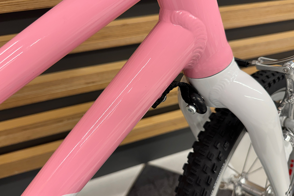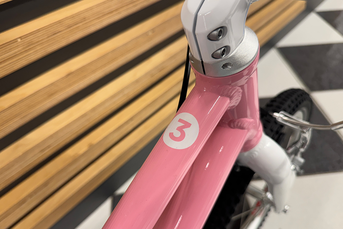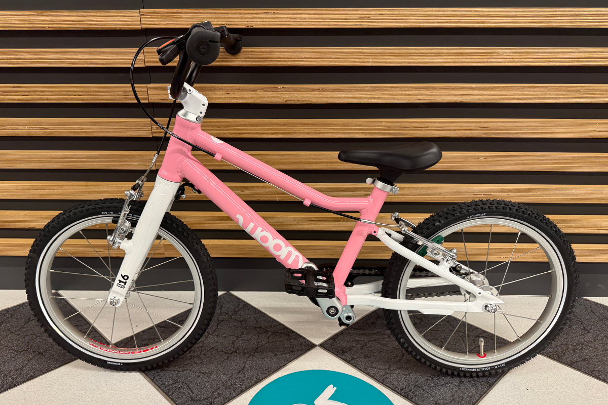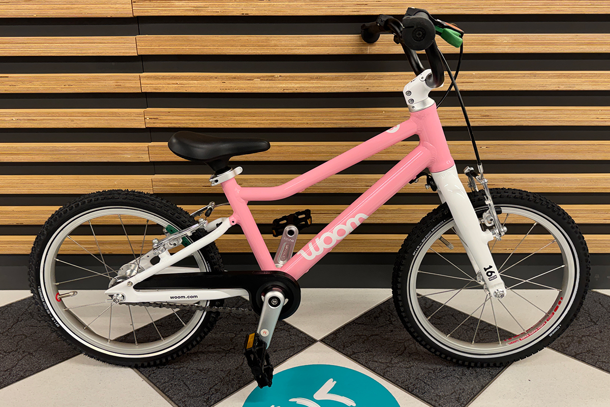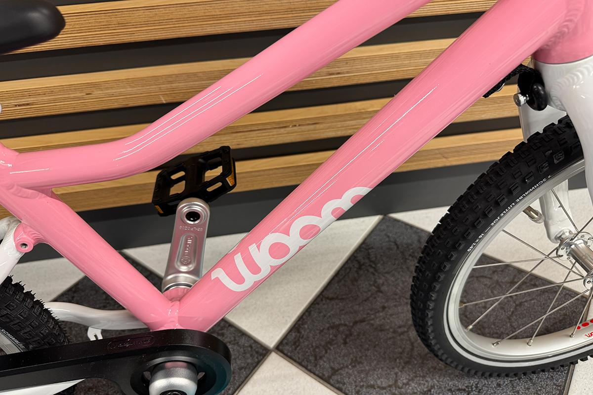 Rower dziecięcy woom 3 GO na 16" kołach posiada ramę wykonaną w całości z bardzo lekkiego stopu aluminium 6061, dzięki czemu waga całego roweru wynosi tylko 5.6 kg! Rozmiar ramy jest dostosowany dla dzieci w wieku od około 4 do 6 lat, a kierując się wzrostem – od około 105 cm. Minimalna wysokość siodełka wynosi 48 cm natomiast maksymalna to 64 cm. Nisko poprowadzona rama ułatwia wsiadanie i zsiadanie z rowerka, co jest szczególnie istotne podczas nauki jazdy. O tym jak odpowiednio dobrać rozmiar roweru dla swojej pociechy piszemy w naszym poradniku "Jak dobrze wybrać rower dla dziecka", zachęcamy do lektury przed zakupem. Aluminiowy widelec skierowany jest mocno do przodu, co zwiększa kontrolę nad rowerem, a jest to bardzo istotne podczas nauki jazdy na rowerze oraz w szlifowaniu tej umiejętności. Rower występuje w kilku wariantach kolorystycznych, z których każdy maluch na pewno wybierze któryś dla siebie.
