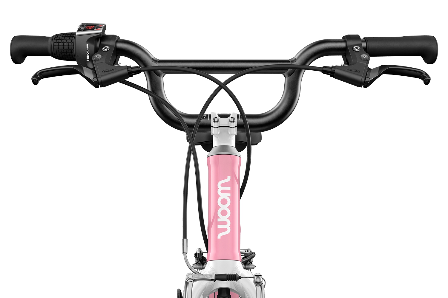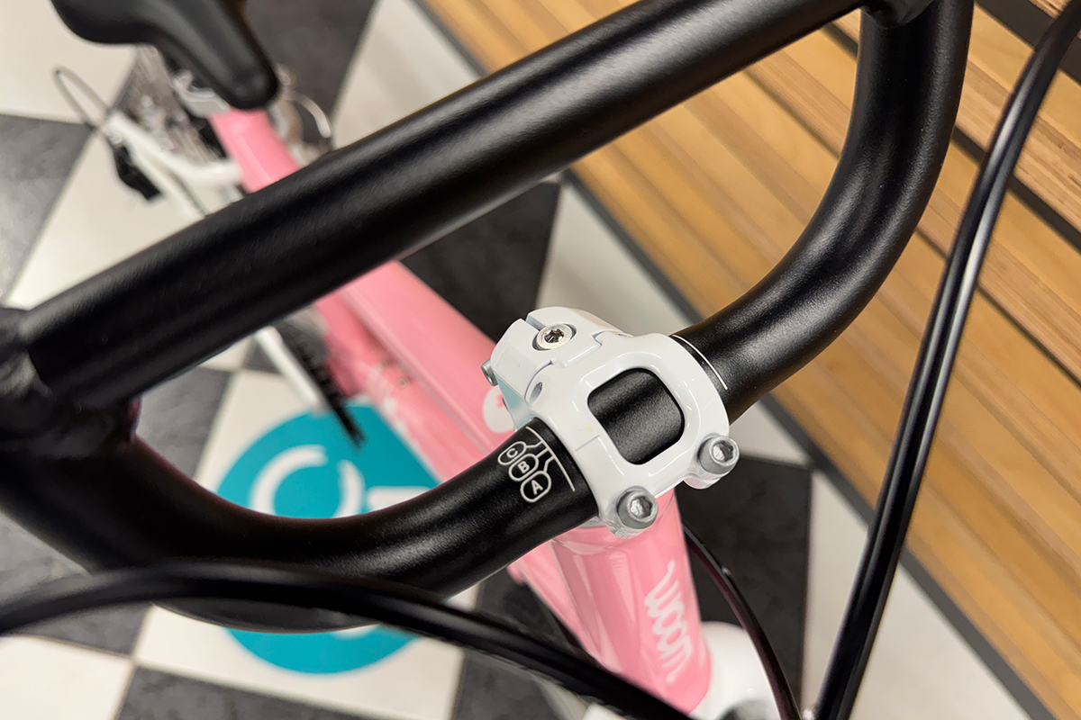 Anodowana na czarno kierownica w rowerze woom 4 GO znajduje się na wysokości 80 cm, a jej szerokość to 56 cm. Kierownica wykonana jest z aluminium, przez co jest bardzo lekka, co znacznie ułatwia kontrolę nad rowerem w trakcie jazdy. Kształt kierownicy inspirowany jest kierownicami rowerów BMX oraz jej wysokość, pozwalają uzyskać wygodną i komfortową pozycję. Rączki woom Ergogrip zapewniają odpowiedni oraz komfortowy chwyt i zapobiegają ślizganiu się dłoni, a ich szerokie zakończenia zwiększają bezpieczeństwo. Ponadto wykonane są bez użycia substancji szkodliwych. Kierownica osadzona jest na lekkim aluminiowym mostku, bezpiecznym dla dziecięcych kolan, ponieważ dzięki zastosowaniu przedniej śruby zaciskowej nie ma żadnych innych wystających śrub. Całość działa płynnie na uszczelnionych maszynowych łożyskach na których opierają się zintegrowane stery ahead o średnicy 1”.