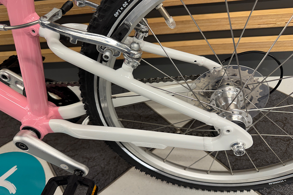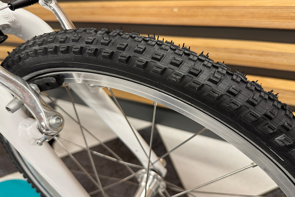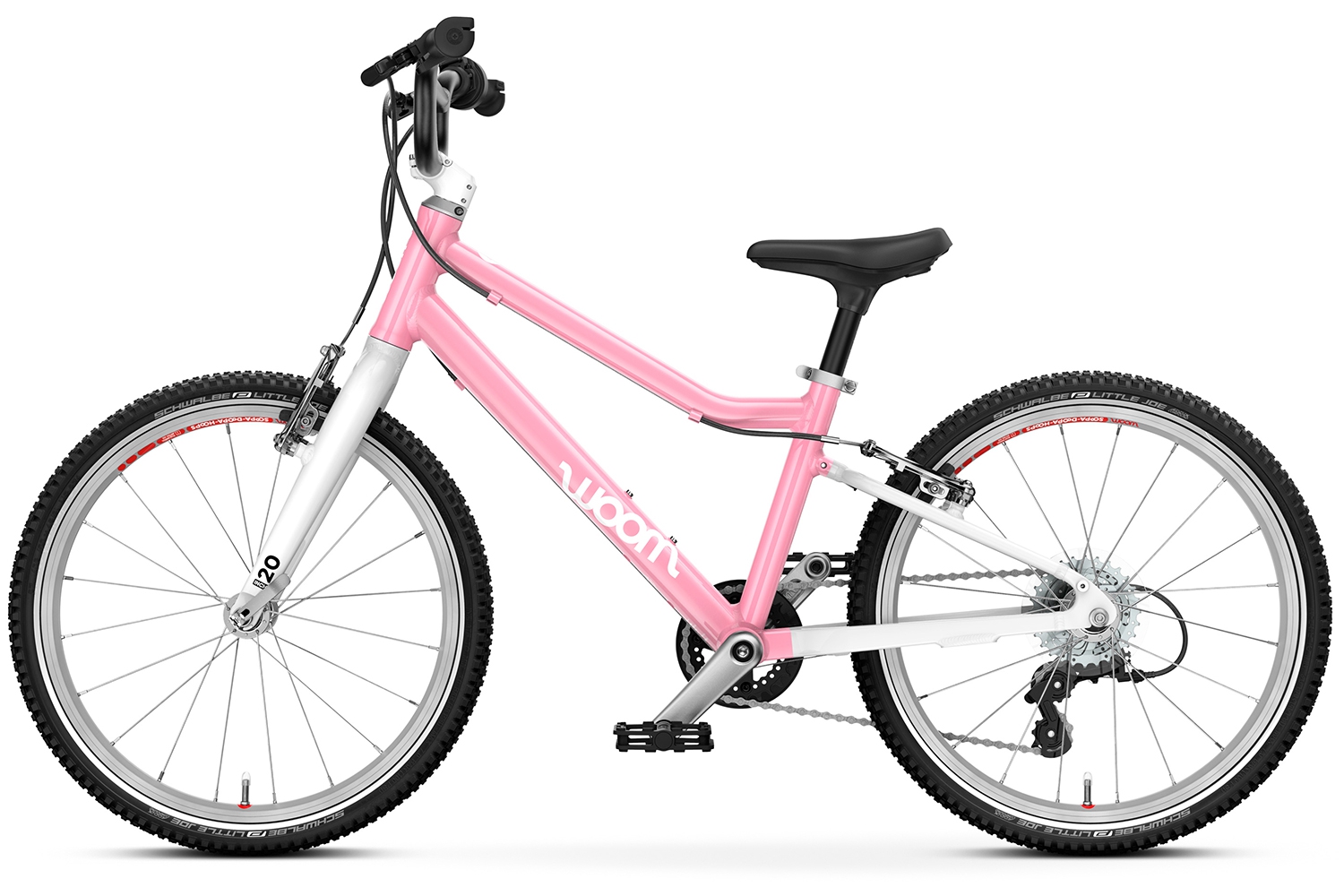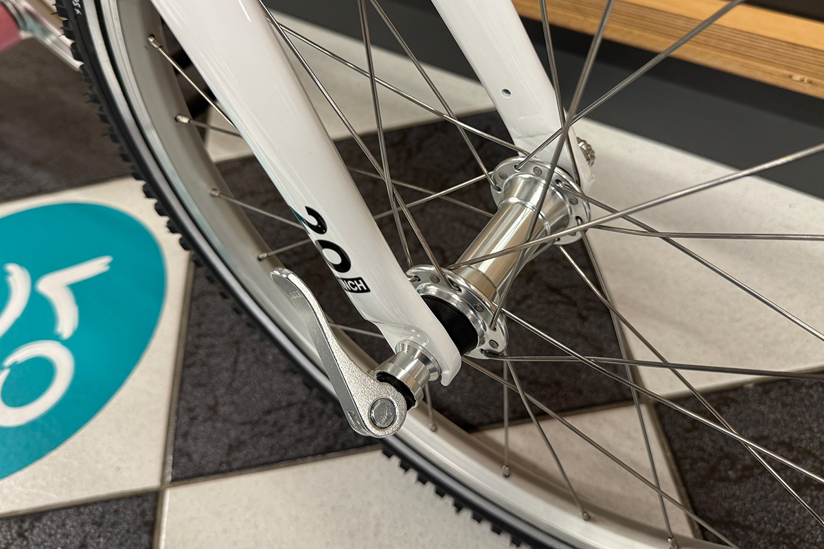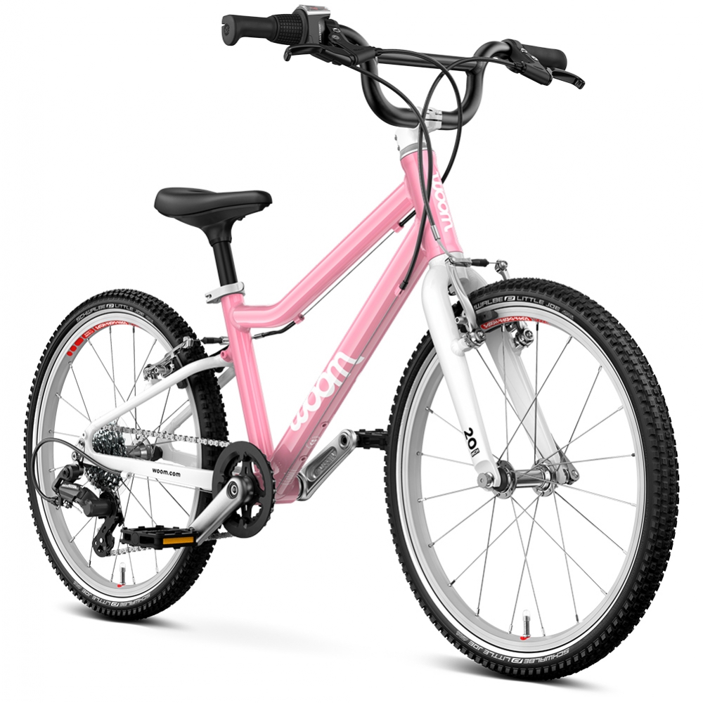 20 calowe koła wykonane z aluminium są montowane na szybkozamykaczach, co pozwala na szybki montaż oraz demontaż np. w razie wymiany dętki czy opony. Piasty z uszczelnianymi łożyskami zapewniają gładką oraz płynną jazdę. Opony w rowerze woom 4 GO to produkt renomowanej niemieckiej firmy Schwalbe. Opony Schwalbe Little Joe zapewniają niskie opory toczenia a także dobrą amortyzację i przyczepność w każdym terenie. Ponadto boczny odblaskowy pasek na ogumieniu zwiększa bezpieczeństwo w przypadku jazdy po zmroku.