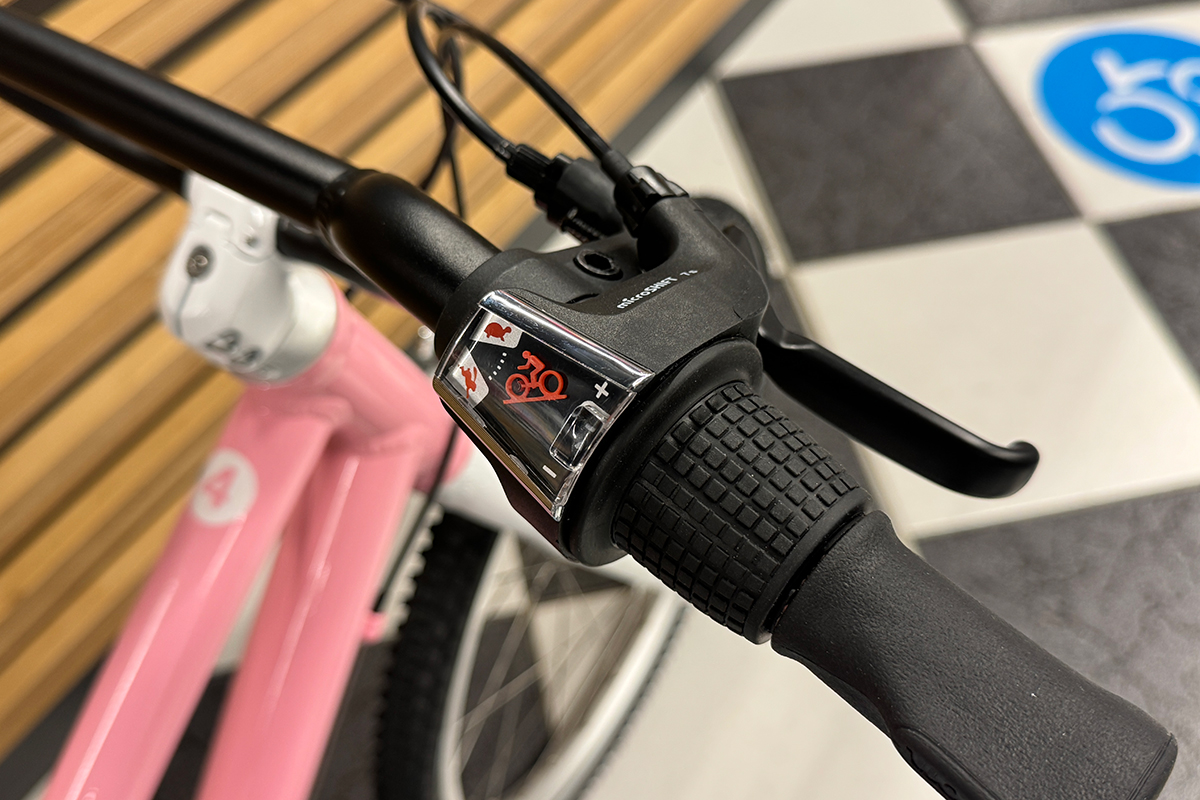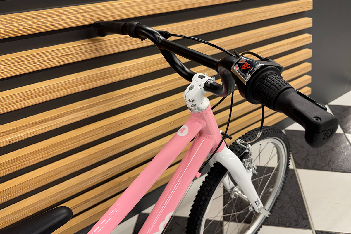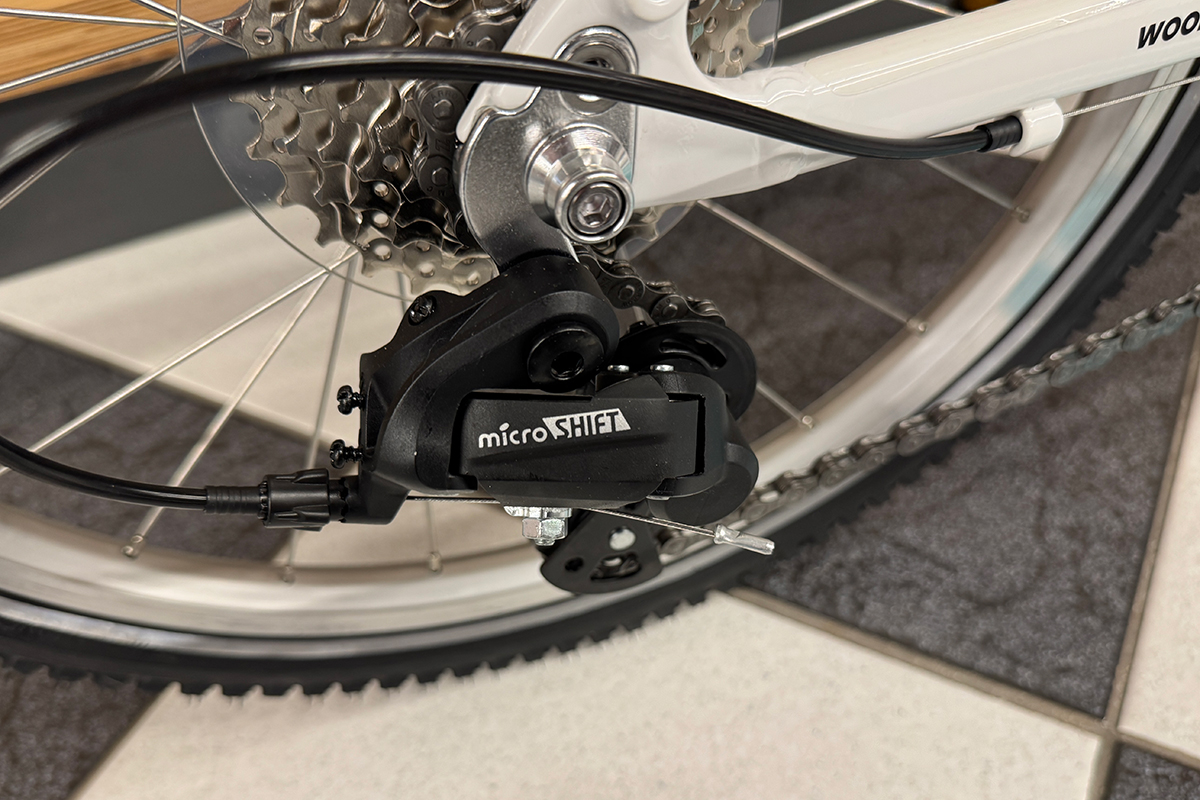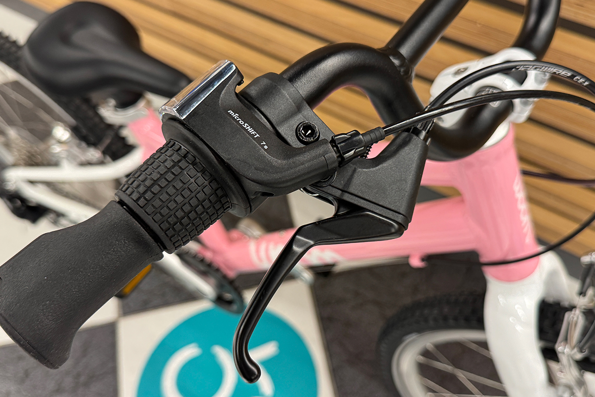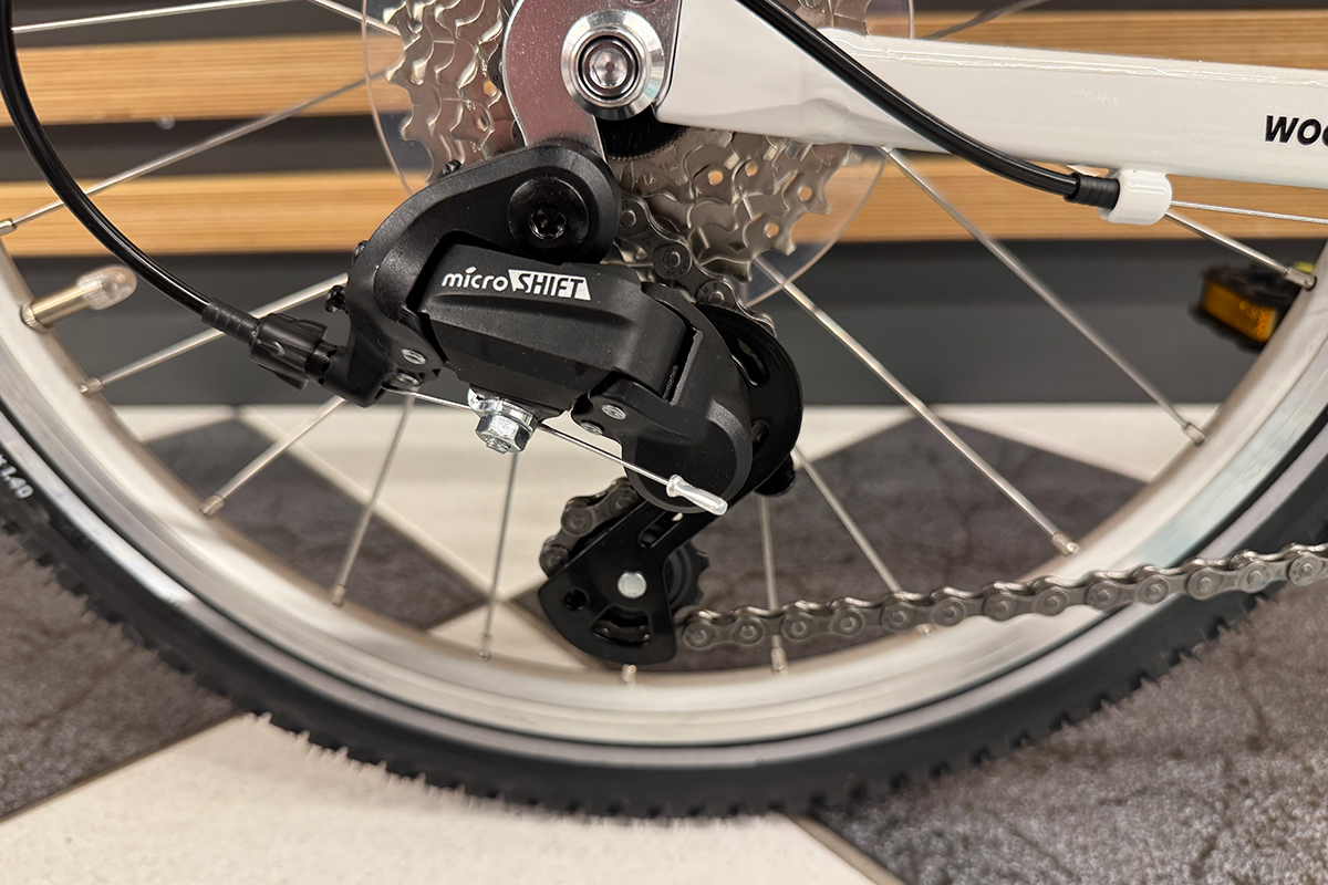 Rower dziecięcy woom 4 GO jest wyposażony w system zmiany biegów. 7 biegowa przerzutka microSHIFT M21SS zapewnia szerokie spektrum możliwości i otwiera drogę na wiele nowych tras, które wcześniej mogły być nieosiągalne. Sterowanie przerzutką odbywa się za pomocą obrotowej manetki microSHIFT Ds45, co jest bardzo klasycznym oraz wygodnym rozwiązaniem i każdy młody pasjonat rowerów bez problemu sobie z nią poradzi. Manetka posiada czytelnym dla dzieci wskaźnik biegów.