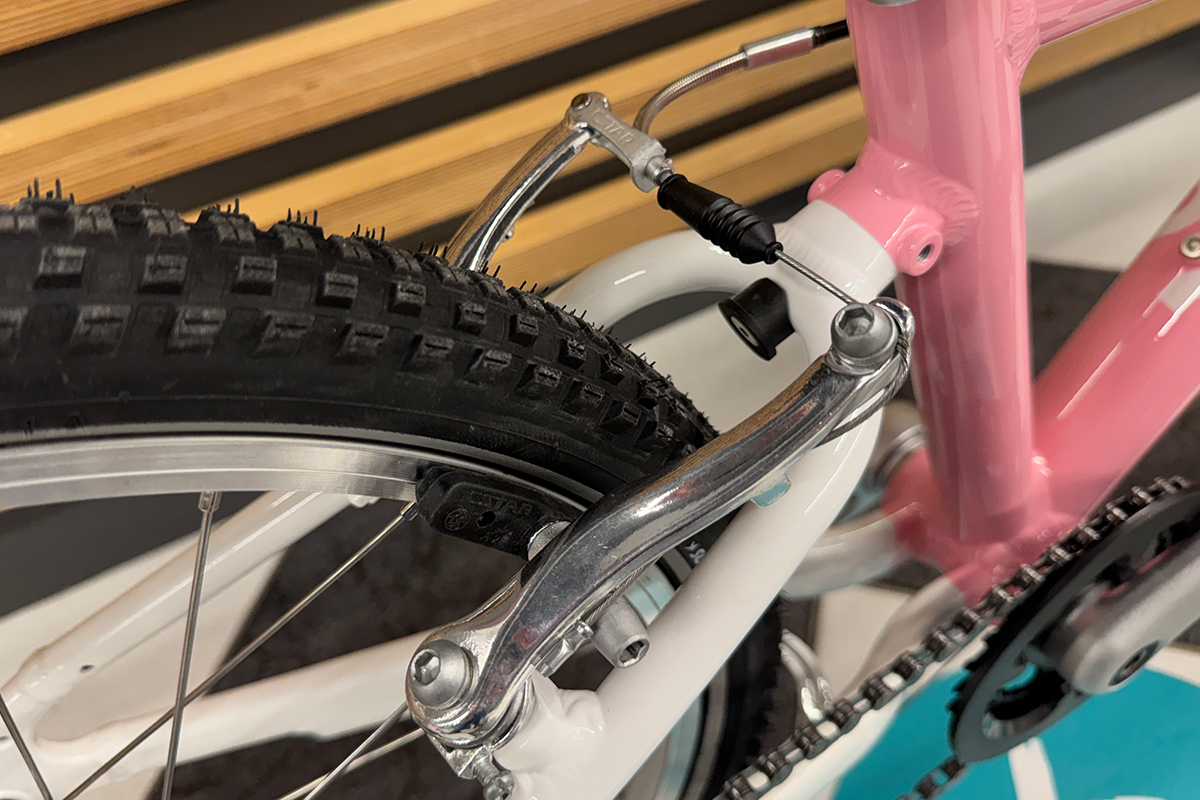 W rowerze dziecięcym woom 4 GO zastosowano tradycyjne hamulce V-Brake, które są najskuteczniejszym rodzajem hamulców. Klocki hamulcowe wykończone miękką okładziną zapewniają dużą i skuteczną siłę hamowania przy niedużej sile nacisku klamki hamulca. Jeśli już mowa o klamkach hamulcowych, to woom specjalnie je 'pomniejszył', aby ułatwić dzieciom dosięgnięcie, a dzięki odpowiedniej konstrukcji wymagają użycia niewielkiej siły do osiągnięcia pełnej siły hamowania. Linki hamulcowe poprowadzone są w wysokiej jakości pancerzach firmy Jagwire, które zmniejszają tarcie i tym samym usprawniają działanie oraz precyzję hamulca.