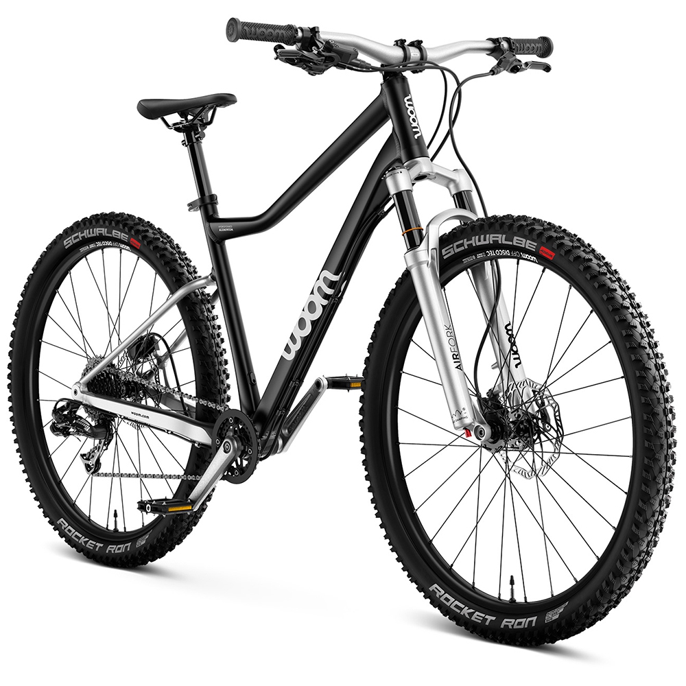 26 calowe koła roweru Woom 6 OFF AIR zbudowane są z ultralekkich obręczy aluminiowych typu OFF AIR Disco Tec. Koła montowane na szybkozamykaczach, co pozwala na szybki montaż oraz demontaż np. w razie wymiany dętki czy opony. A jeśli już o oponoach – górski rower Woom 6 OFF AIR posiada opony renomowanej marki Schwalbe. Model, którego użyto - Schwalbe Rocket Ron 26x2.25'' dostosowany do tras MTB wykonany z bardzo wytrzymałych materiałów z mieszanką gumy Addix Speed. Głęboki bieżnik i duża szerokość opon zapewniają doskonałą przyczepność, niski opór toczenia i dużą odporność na wszelakie uszkodzenia mechaniczne. Szczelne łożyska maszynowe sprawiają, iż jazda jest płynna i niemal bezszelestna nawet w najtrudniejszych warunkach.