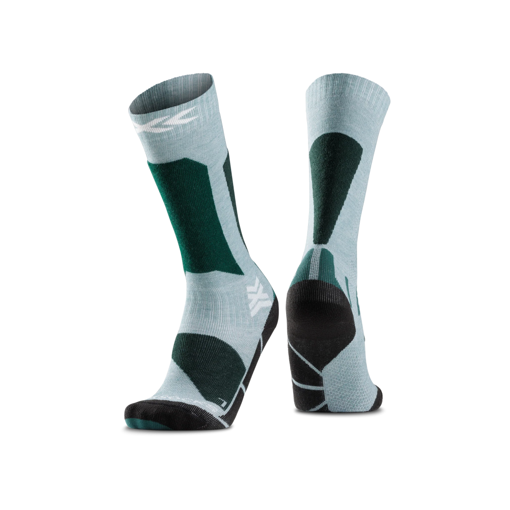 Skarpety narciarskie X-Socks Ski Discover OTC Junior to model naszpikowany technologiami, który oferuje wysoki poziom ochrony i stabilizacji stopy młodego narciarza. W newralgicznych i najbardziej narażonych na ucisk miejscach, takich jak goleń, pięta, podbicie czy palce, zastosowano specjalne ochraniacze wykonane z innowacyjnych materiałów. Poza podstawową funkcją ochrony przed obtarciami i odciskami, zapewniają one skuteczną amortyzację, co bezpośrednio przekłada się na komfort noszenia w twardych butach narciarskich. Ochraniacz ścięgna Achillesa projektu Lamberta-Nicholsona zabezpiecza to wrażliwe miejsce przed przetarciami i zapobiega nadwyrężeniom, tworząc strefę buforową pomiędzy stopą a butem. Za stabilne ułożenie skarpety odpowiada opaska O-Ring Compression Band, która delikatnie wspiera stopę i zapobiega przesuwaniu się materiału, natomiast elastyczny ściągacz Aktiv-Bund® utrzymuje skarpetę na właściwej wysokości bez uczucia ucisku.