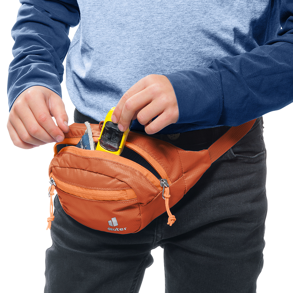Deuter Junior Belt to lekka i praktyczna nerka zaprojektowana specjalnie dla dzieci, które lubią mieć swoje skarby zawsze przy sobie – podczas spacerów, wycieczek czy wakacyjnych przygód. Saszetka ma główną komorę z siateczkową przegródką oraz przednią kieszeń zapinaną na zamek z klipsem na klucze, dzięki czemu wszystkie drobiazgi można bezpiecznie uporządkować. Odpwiednio długi pasek daje możliwość noszenia jej zarówno na biodrach jak i przepasanej przez ramię. Szybka i lłatwa regulacja paska pozwala idealnie dopasować nerkę do każdeej sylwetki, a solidne zamki gwarantują wygodne użytkowanie każdego dnia. Saszetka Deuter Junior Belt wykonana została z dwóch wytrzymałych tkanin: poliestru i poliamidu, pochodzących w całości z recyklingu. Oba materiały są odporne na przetarcia, nie chłoną wilgoci i łatwo się czyszczą, co sprawia, że saszetka świetnie znosi dziecięce przygody w każdych warunkach. Co więcej, Junior Belt powstała bez użycia szkodliwych substancji PFC, a jej produkcja spełnia surowe normy środowiskowe potwierdzone certyfikatami bluesign i Green Button.