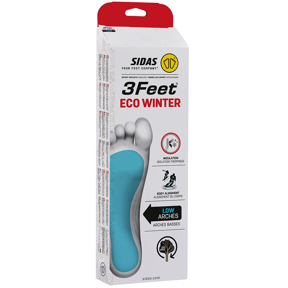 Wkładki do butów Sidas Winter 3Feet Eco Winter Low przeznaczone są dla osób o niskim sklepieniu stopy, które chcą poprzez lepsze dopasowanie chcą zwiększyć komfort użytkowania butów zimowych jak i narciarskich. Ich trójwymiarowe wyprofilowanie odpowiada idealnemu dopasowaniu do anatomii stopy o normalnym łuku.