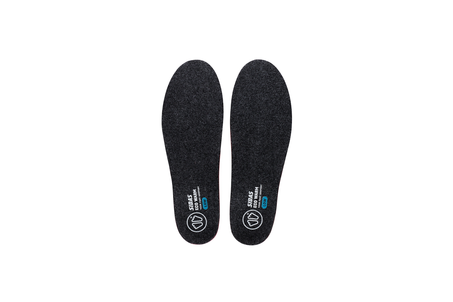 Spód wkładki Sidas Winter 3Feet Eco Warm Low stanowiący niejako jej szkielet wykonany został z miękkiej pianki Evamic. Zapewnia ona bardzo dobre pochłanianie wszelkich wstrząsów i drgań. Tworzywo to cechują również dobre właściwości izolacyjne chroniąc stopy narciarza przed wychłodzeniem. Drugim elementem, który ma duży wpływ na komfort cieplny jest wierzchnie pokrycie wkładki poliestrowym filcem z recyklingu. Na wysokości podbicia aż do pięty znajduje się usztywnienie z materiału EVA, które zapewnia maksymalne podparcie stopy lepiej rozkładając obciążenia oraz niwelując uczucie zmęczenia i ryzyko odparzeń.